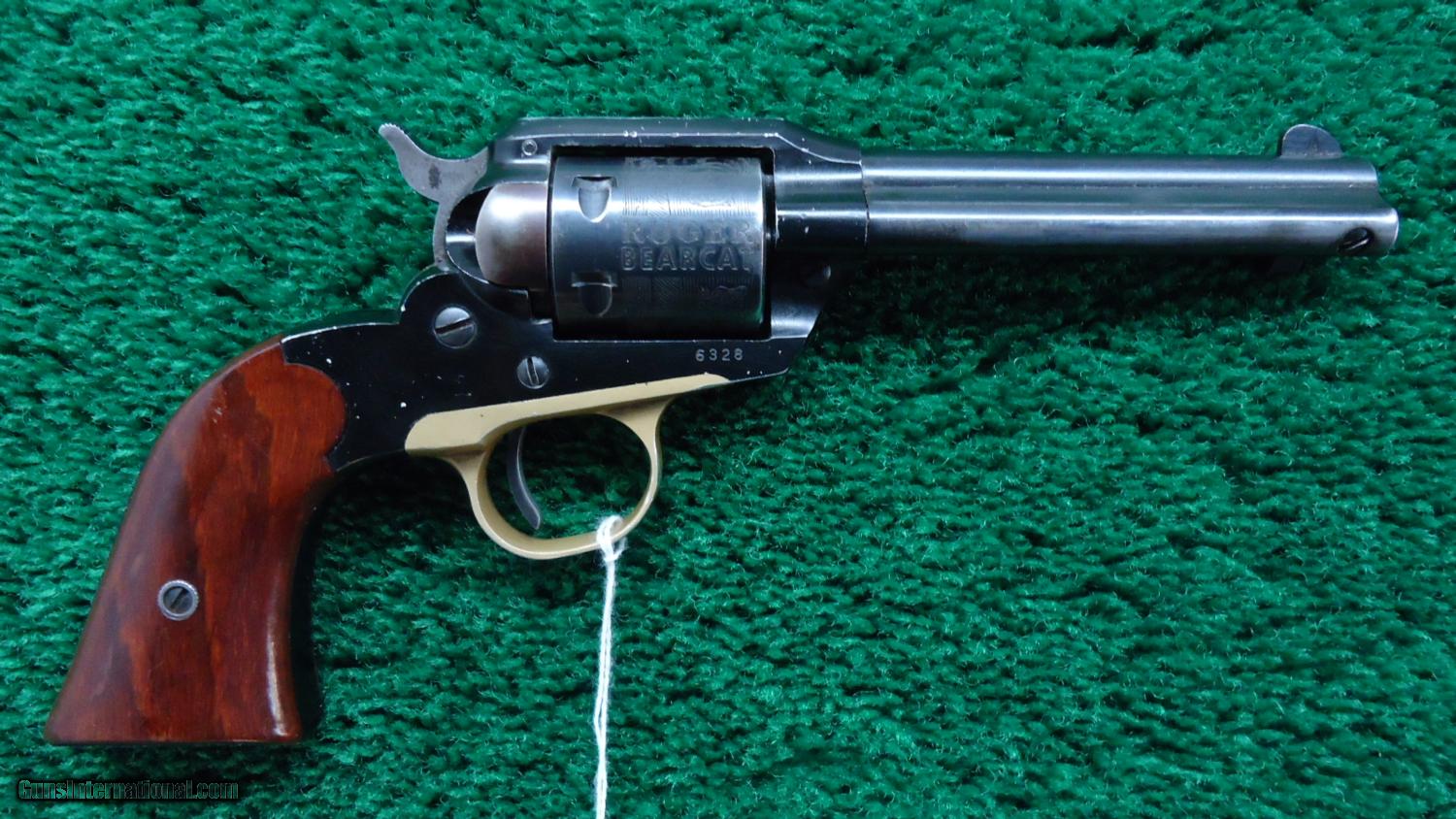 Description: The Bearcat is a small single action revolver in 22 cal 6-shot. This would be the first variation in an early gun with hand grips that are without the medallion. The Bearcat came out in 1958 and had different series of serial numbers. This one is just over 6k. An early production gun likely in the 2nd or third year. This gun shows some holster wear mostly at the muzzle and the ejector shroud. Loading gate has turned more of a brown color than the rest of the metal which is common for the early Rugers. Very light wear to high points of the cylinder. Cylinder scene is very nice as is the action. Comes with original box including instruction sheet. Also included is a period Red Head leather holster. Leroy Merz Antique Firearms specializes in antique and vintage Winchesters and other fine American firearms. Since 1965 Mr. Merz has taken part in the world of firearms and has been a contributor to many well known reference books. Just recently we mailed the 126th edition of our privately-published catalog. We have hundreds of additional guns in every price range at our home online. Search for Merz Antiques in google. SOLD Curio/Relic: Yes |