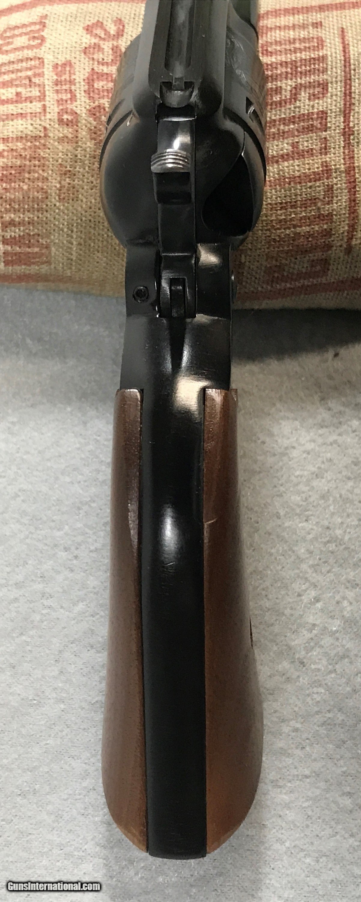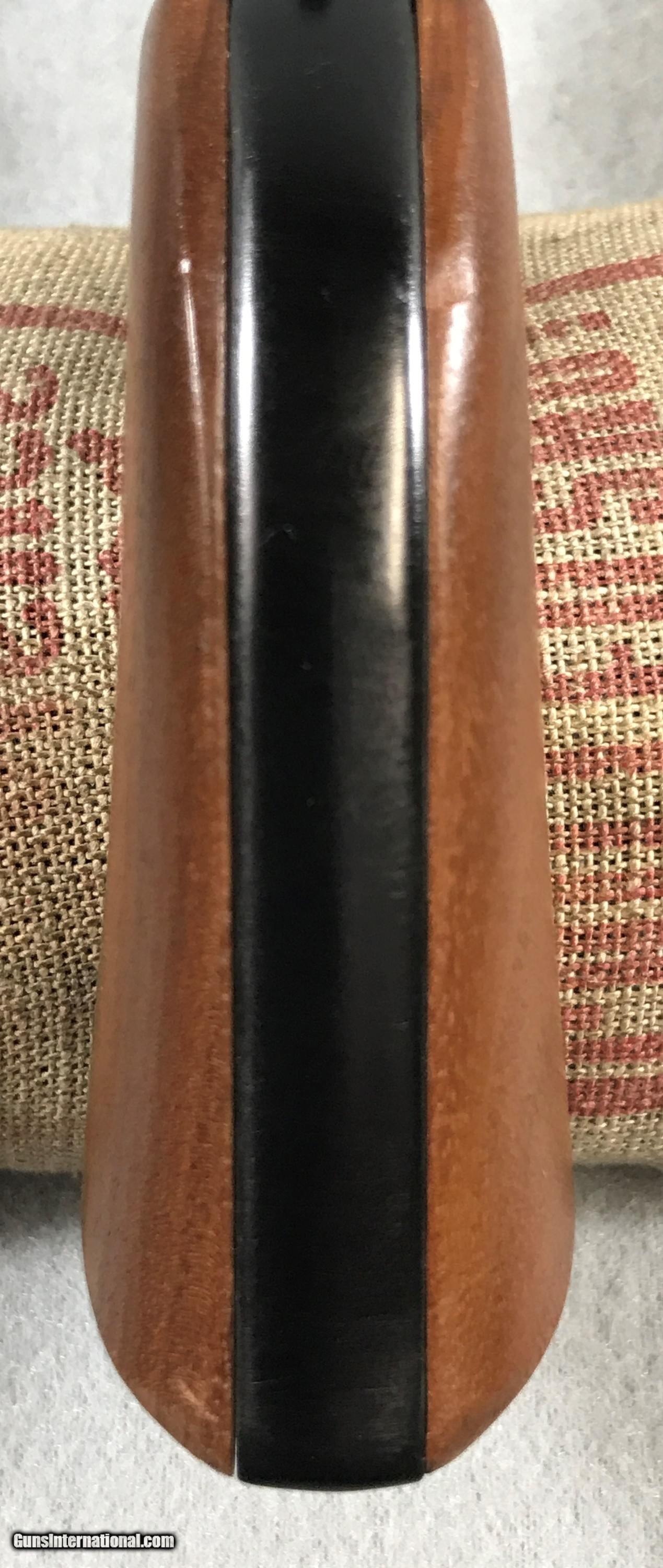 Description: Ruger old model Bearcat .22 Long Rifle. 4" barrel. Walnut grips with eagle medallion. Excellent condition with just a bit of holster wear at the muzzle and the front corners of the frame. There is a small nick on the back edge of the shoulder on the right grip panel. Mfg. 1968 $40.00 S&H SOLD Curio/Relic: Yes Handgun Caliber: .22 Long Rifle Manufacturer: RUGER Model: BEARCAT Serial Number: 100273 Barrel Length: 4 Condition: EXCELLENT Metal Condition: VERY GOOD/EXCELLENT Wood Condition: EXCELLENT Bore Condition: EXCELLENT Weight: 17oz Sights: FIXED Manufacture Date: 1968 |