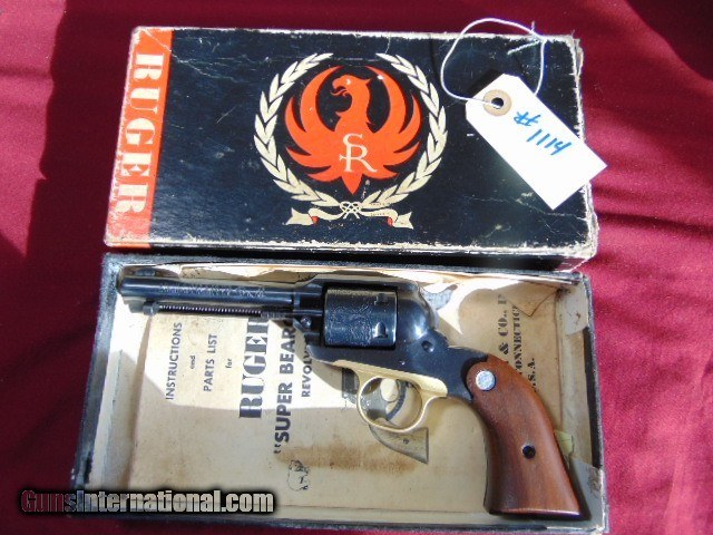 Description: RUGER SUPER BEARCAT REVOLVER , CALIBER 22LR. SER# 91-28721 MADE IN 1972. NICE REVOLVER COMES WITH ORIGINAL BOX AND MANUAL. VERY NICE ORIGINAL FINISH . NICE SOLID GRIPS. EASTERN BRANCH FIREARMS gleneasternbranchfirearms ADD 35.00 SHIPPING – HANDGUN UPS 2ND DAY AIR ADD 35.00 SHIPPING – LONG GUNS GROUND SHIPPING Questions e-mail or call Glen at Eastern Branch Firearms 207-215-5021 TERMS – PLEASE READ BEFORE I DO NOT HAVE A LAYAWAY OPTION ( WE ACCEPT CREDIT CARDS ) -- I GET ALOT OF REQUEST FOR TRADES, I WOULD PERFER NOT TO DO TRADES ON MY INTERNET LISTINGS PAYMENT OPTIONS- We accept money orders, cashier’s checks , bank checks. sorry no personal checks. We accept all major credit cards please add 3% to the ’s cash discount price.(Maine Residents to pay 5% sales tax) .Handguns and long guns do need to be shipped separate. PLEASE do not send payment via FED EX . USPS & UPS are fine. Thank you. We include a signed copy of our FFL with each firearm shipped. SAFTY NOTICE- Buyer is solely responsible for determining that a used gun is safe to shoot. The firearms offered have not been test fired but have been given a visual inspection only for purposes. It is a requirement that every used firearm is inspected by a qualified gunsmith before firing. By , the buyer agrees to hold seller harmless against damages, injury, or death caused by defective merchandise. RETURN POLICY- All firearms come with a 3-day non firing , non messing with ( turning srews ,taking apart,removing parts, scoping. firing, cleaning or messing with in anyway) inspection/return privilege.Inspection is based on a visual review of the gun to confirm the gun is in the condition stated. In the case of a return, buyer pays all shipping charges & if paid for with a credit card buyer absorbs the 3% credit card charges . So please ask questions BEFORE you bid. Thanks for Looking and Good Luck!! U.S. sales only, no exports…this includes antiques. I will ship to third party for exporting SOLD |