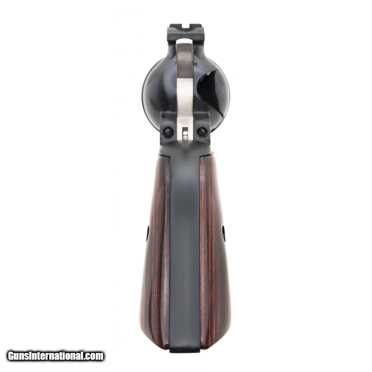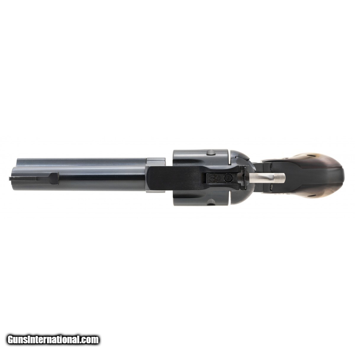 Description: " SN: 38-4463. Single action blued revolver with 4.75"" barrel and rear adjustable sights. Overall excellent condition. Comes with box and 1-.357Mag and 1-9mm cylinder. SOLD |