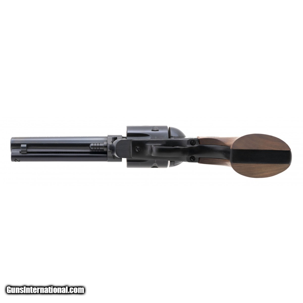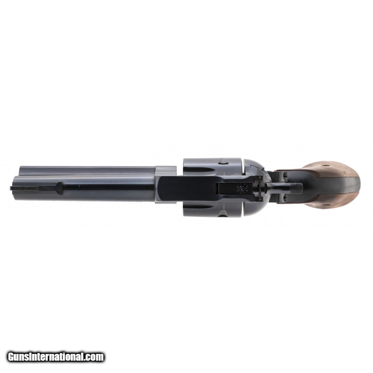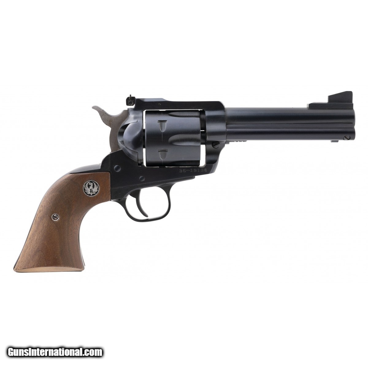 Description: " SN:35-19136. Single action revolver with 4 5/8"" barrel, blued finish and wooden grips. In excellent condition. SOLD |