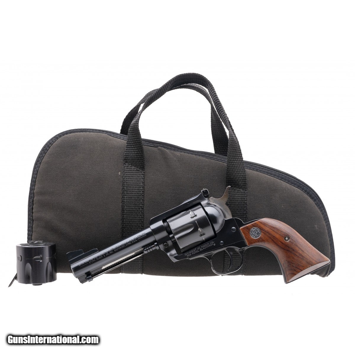 SN: 37-31167. Made in 1994. .357 Magnum with a 4.75"" barrel. Bore is very good. Single action revolver with an additional 9mm cylinder. Finish is in good condition with wear noted around the ejector rod housing. Grips show light handling wear. Revolver comes with additional 9mm cylinder and zipup carrying case. Overall good condition.