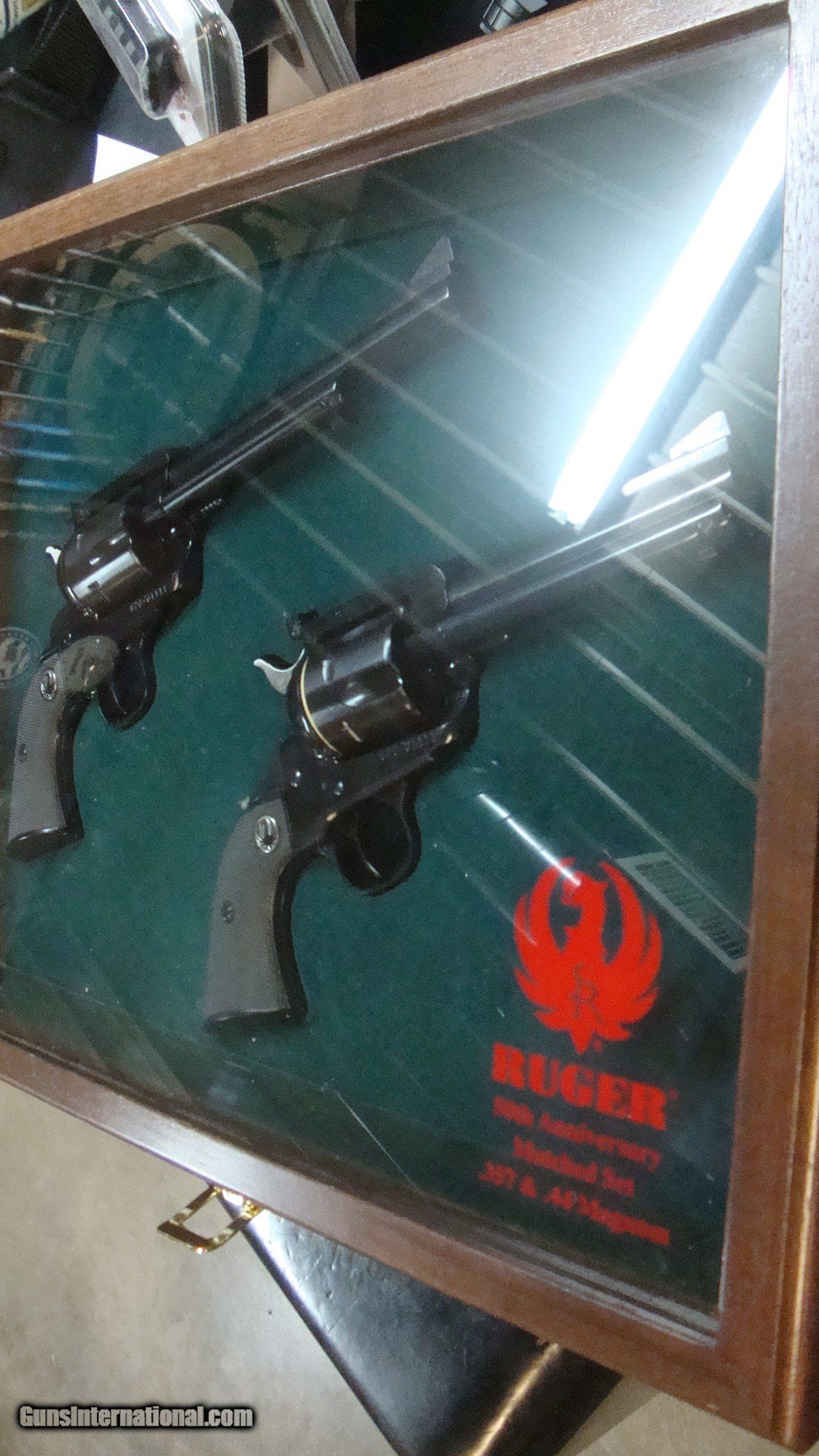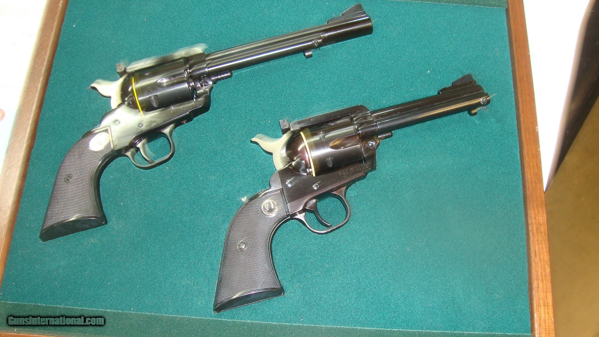 Description: THIS SET IS NEW IN A WOOD AND GLASS CASE RUGER BLACKHAWKS 357 & 44 SAME SERIAL #s 50 TH. ANNIVERSARY SET SOLD Manufacturer: RUGER Model: BLACKHAWK Condition: NEW |