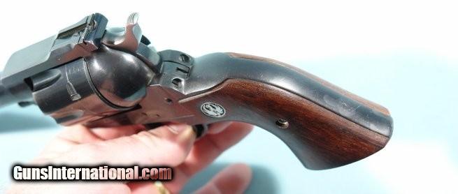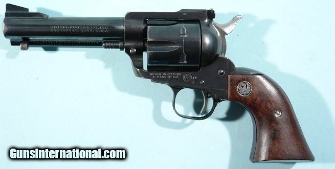 Description: 1966 2ND YEAR RUGER OLD MODEL BLACKHAWK .41 MAGNUM 4 5/8" BLUE 3-SCREW SINGLE ACTION REVOLVER. All matching with 90% plus of the factory original blue just fading at edges and muzzle. Original anodized black finish on alloy triggerguard/back-strap at 90% with balance at edges which includes some faint dings at butt(see photos). Crisp working order. No transfer bar conversion. Correct factory sights(rear protected adj.) and front ramp. Correct "S" stamped cylinder. Mint bore, rifling and chambers. .41 Mag a fun manageable caliber and a classic from the 2nd year of production of the Ruger Blackhawk in this caliber SOLD Curio/Relic: Yes |