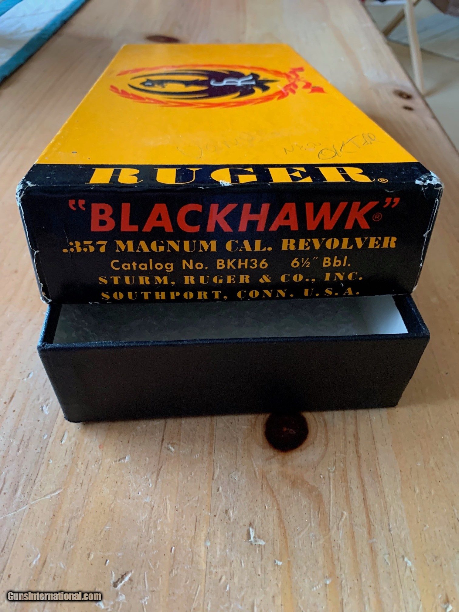 Description: Ruger Blackhawk in 357 Magnum from 1966. 58 years old and 98% Unconverted. Box but no paperwork. More pictures on request. SOLD |