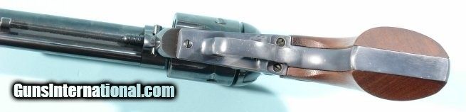 Description: 1969 RUGER OLD MODEL BLACKHAWK .357 MAGNUM 6 1/2" BLUE SINGLE ACTION REVOLVER. Ruger Model BKH36 with 6 1/2" barrel. Hammer lightened by drilling holes through it (professionally done) and having some old dried grease that will clean off(see photos). Front sight altered. Original rear adjustable sight with pretective ears. 97% of the factory blue remains with almost no holster wear. Excellent screws. Mint bore and chambers. Perfect working order, timing and lockup. Excellent Ruger wood grips. Used but not abused. Probably a tack driver as so much attention paid to sights and hammer. Pre transfer bar conversion with three screw frame. SOLD Curio/Relic: Yes |