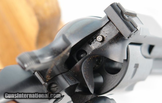Description: 1971 RUGER OLD MODEL BLACKHAWK .357 MAGNUM 6 1/2" BLUE SINGLE ACTION FLAT-TOP REVOLVER. Serial number "30-95XXX" and all matching. 99% of the original factory blue remaining with almost zero signs of use with NO drag lines on cylinder. Screws unturned. Factory grips a perfect fit. Adjustable rear sight factory. Ejector rod housing a tad loose and may just need tightening down(may explain why never used and owner didn’t know where to get replacement screw as that is all it needs). SOLD |