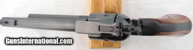 Description: 1971 RUGER OLD MODEL BLACKHAWK .357 MAGNUM 6 1/2" BLUE SINGLE ACTION REVOLVER. Serial number "30-95XXX" and all matching. 99% of the original factory blue remaining with almost zero signs of use with NO drag lines on cylinder. Screws unturned. Factory grips a perfect fit. Adjustable rear sight factory. Ejector rod housing a tad loose and may just need tightening down(may explain why never used and owner didn’t know where to get replacement screw as that is all it needs). SOLD |