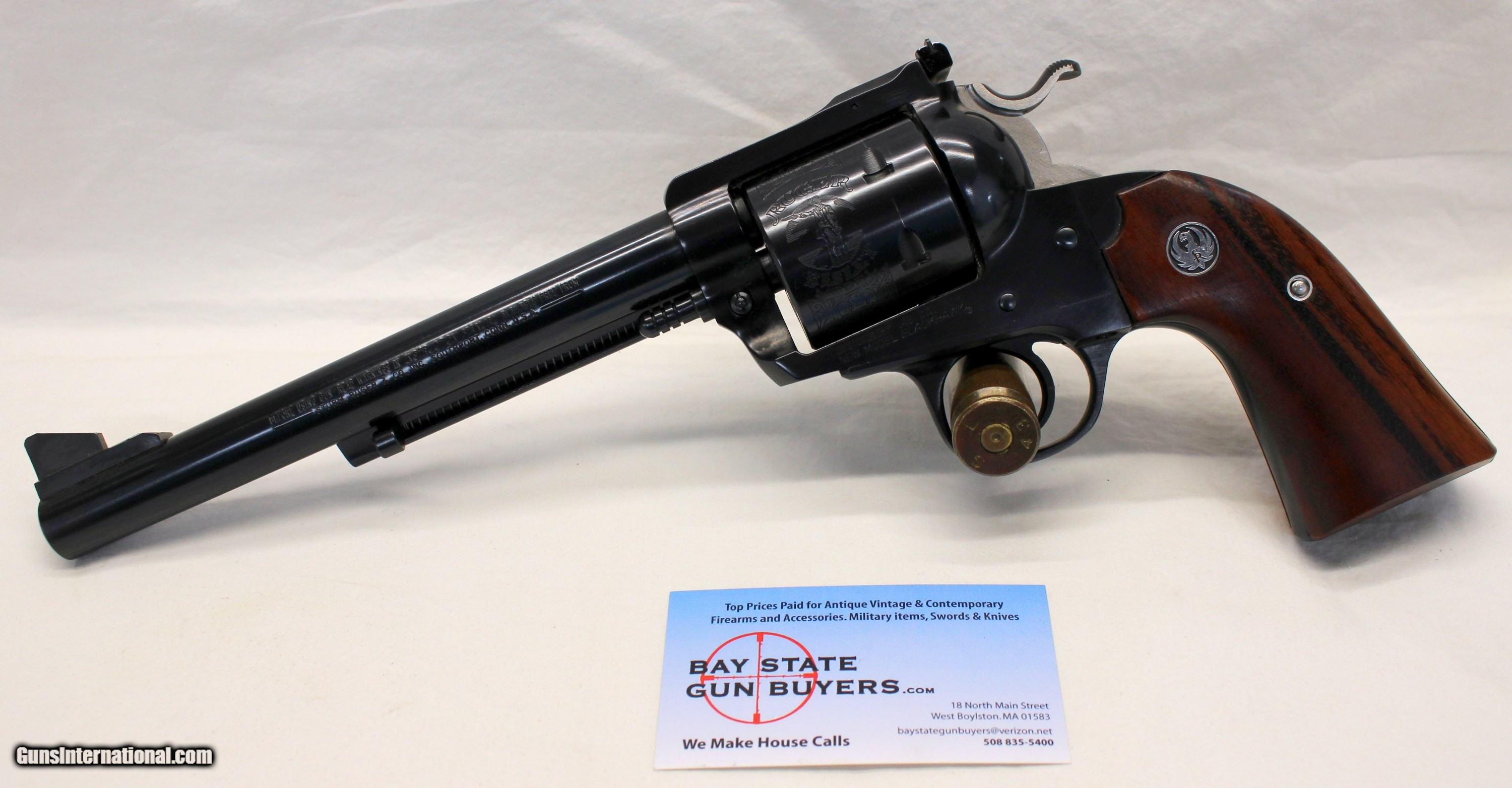 Description: We are offering a Ruger NEW BLACKHAWK BISLEY single action revolver chambered in .45 caliber. This revolver remains in EXCELLENT condition. No box or manual. 7.5" barrel is excellent with bright bore showing crisp rifling. Very little overall wear. The frame is excellent as well showing very little to no wear. Gun functions flawlessly. Origina wood grips are excellent without wear. VERY CLEAN EXAMPLE! SHIPPING IS $29.95 USPS PRIORITY WITH INSURANCE **** PLEASE NOTE: WE ONLY ACCEPT MASTERCARD AND VISA AS PAYMENT OPTIONS (please note we charge a non-negotiable 3% CC fee) **** **** WE TAKE CREDIT CARD PAYMENT OVER THE PHONE. WE DO NOT TAKE PAYMENT THROUGH THIS **** PLEASE LOOK AT ALL PHOTOGRAPHS FOR CONDITION Please know the legality of any weapon in your state before . If a gun can’t be transferred to you we will charge a 15% re-stocking fee. We are in the shop MODAY, WEDNESDAY, THURSDAY, FRIDAY and SATURDAY 8am-4pm EST. We will be in touch within 24 hours of your purchase. Please be ready to provide CC information. Please have your FFL email a copy of their license to: . No Face To Face Transfers! Please note: Clicking "buy" does not guarantee that this gun is yours, However clicking “Buy” will reserve this gun for you, if it hasn’t been sold in store. We will try to do our best to remove the posts as efficiently as possible, but sometimes delays may ensue. “Buy” is your safest bet to reserve a gun. Also please add 6.25% MA state sales tax (if from MA) and 3% credit card shop courtesy fee for all out of state buyers Before calling with concerns read these conditions and meet them accordingly. SOLD |