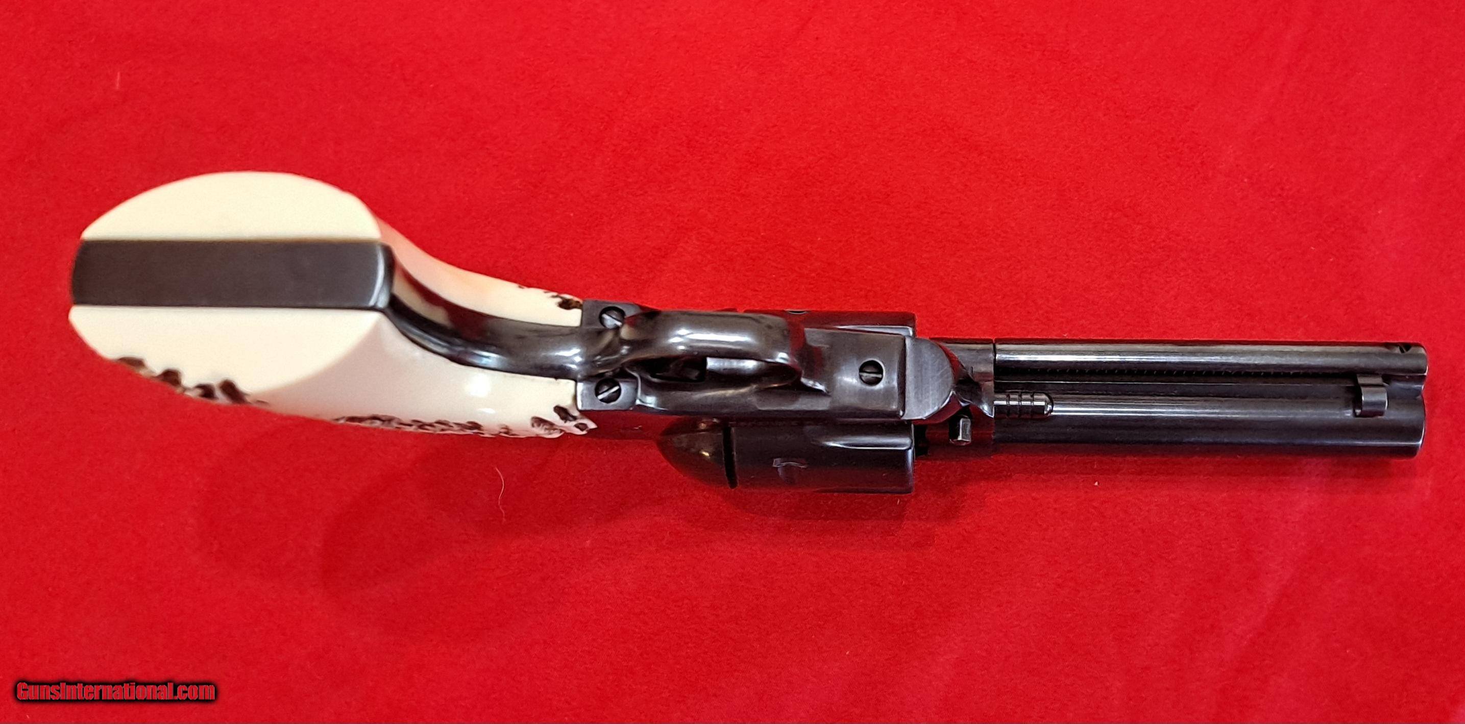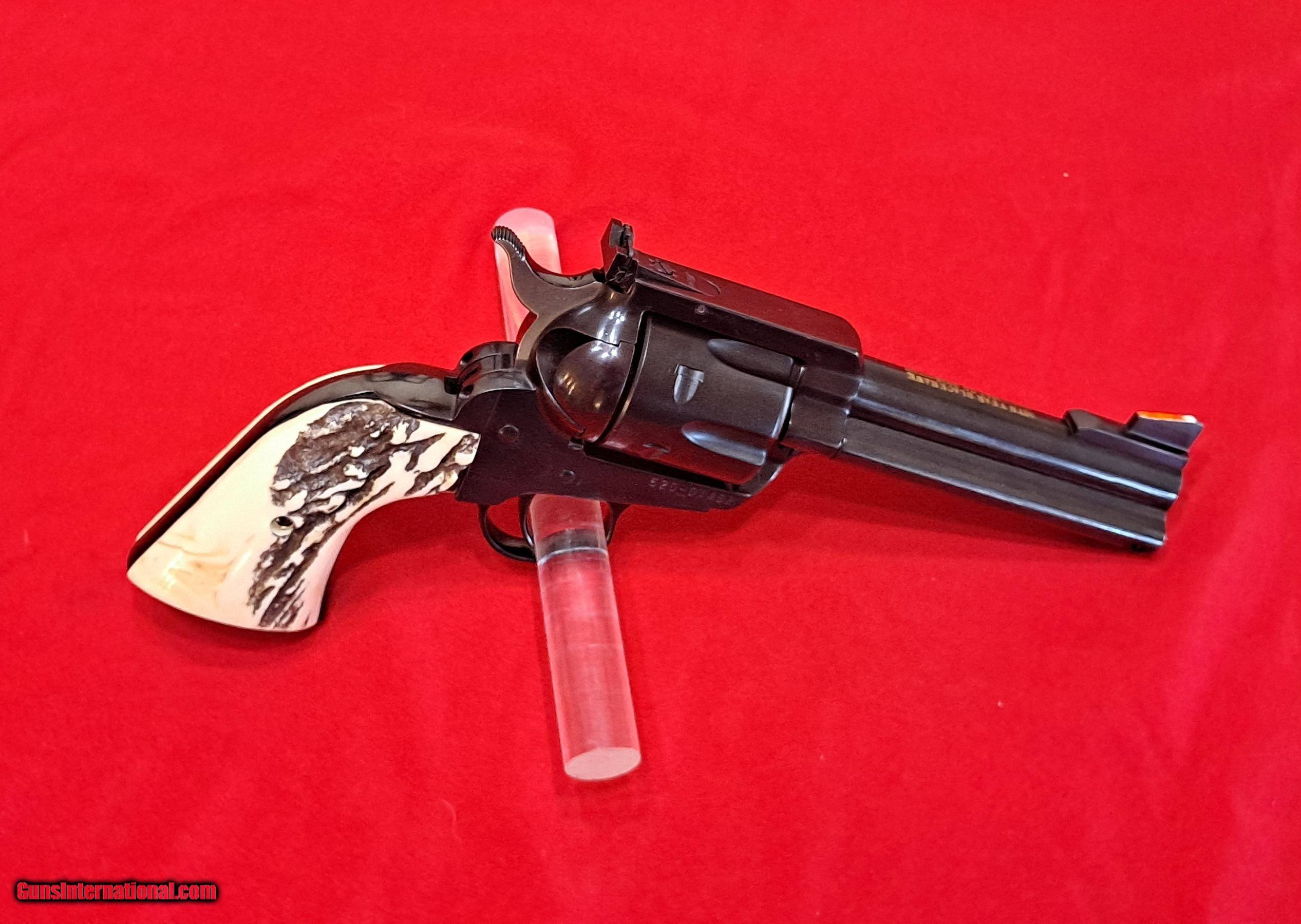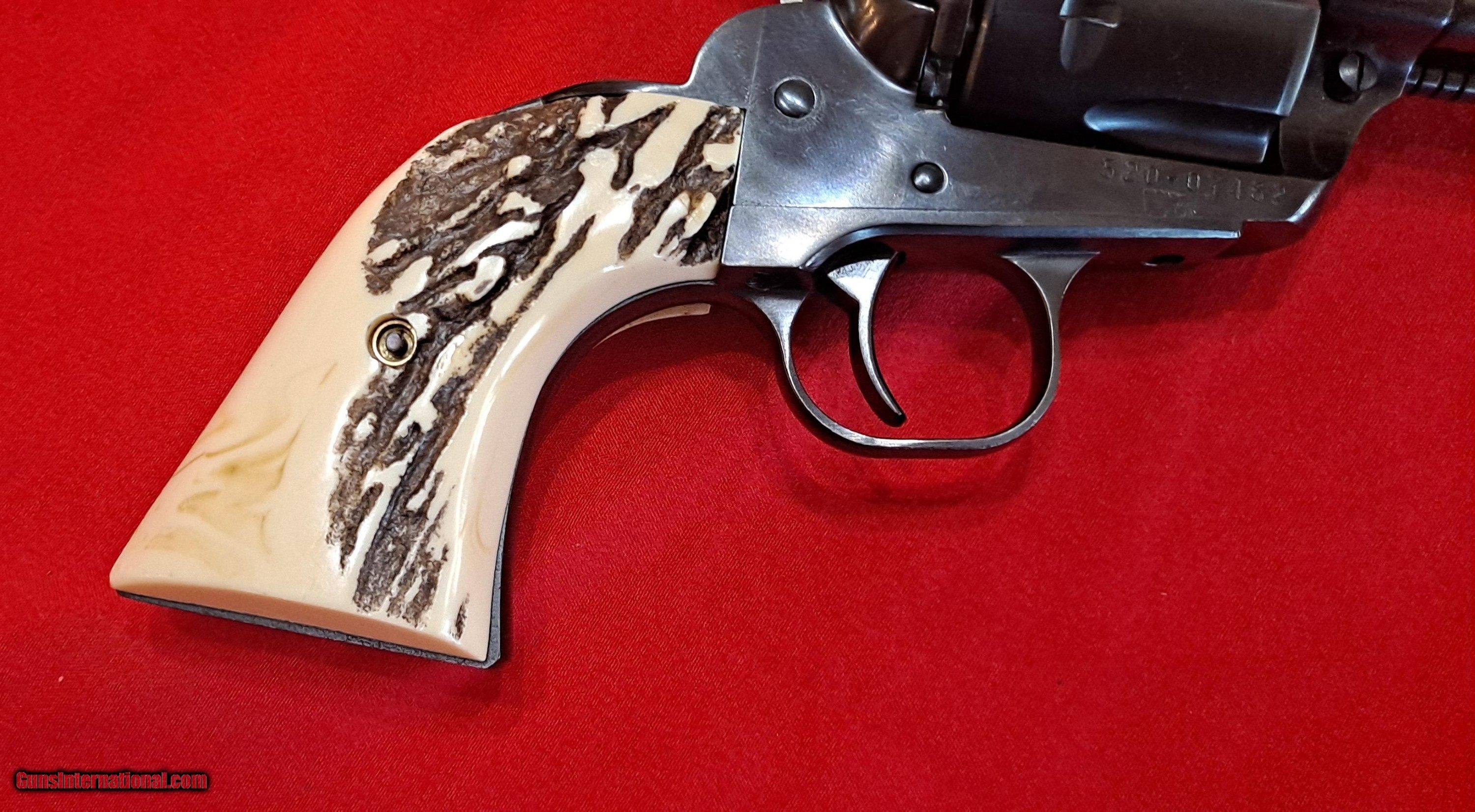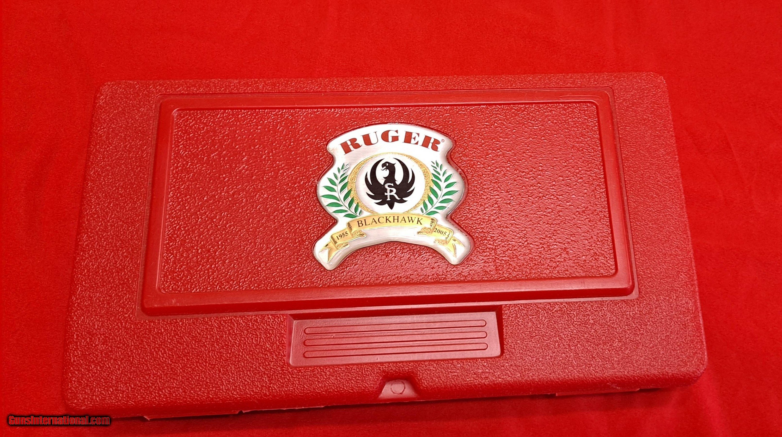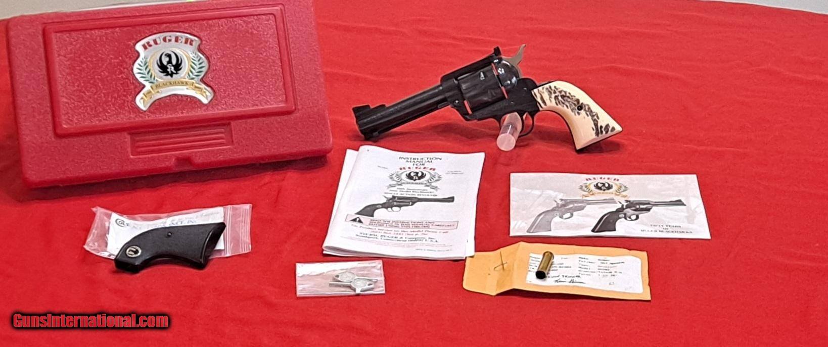 Description: Calling all you Ruger collectors here is a chance to add this safe Queen to your collection. This one has the original grips as well as the box still young for the age but very sort after. This will not last long so do yourself a favor and grab it while you can and give it a new home.Just in case you were concerioned it does come with the original grips as well as the aftermarket ones as shown on the gun. In 2005, Sturm, Ruger celebrated the 50th Anniversary of its first centerfire revolver, the legendary Ruger Blackhawk® in .357 Magnum, by announcing a 50th Anniversary model. Produced only in 2005, the original Blackhawk-size "Flat Top" frame featured an original "micro"-style click adjustable rear sight and a smaller pre-1962 "XR-3" grip frame with checkered "hard rubber" grips bearing original-style black Ruger medallions. This unique blued single-action revolver sported a 4-5/8-inch barrel and a special commemorative gold-colored roll mark. The .357 Magnum 50th Anniversary New Model Blackhawk benefited from 50 years of continuous refinements, including a unique reverse-indexing pawl for easy loading and unloading, a new hammer spring to make cocking easier than ever, and of course, Sturm, Ruger's patented transfer bar ignition system. SOLD Curio/Relic: Yes Handgun Caliber: .357 Magnum |