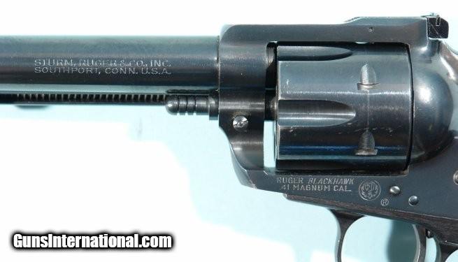 EARLY 1968 RUGER OLD MODEL BLACKHAWK THREE SCREW .41 MAGNUM 6 1/2" BLUE S.A. REVOLVER.