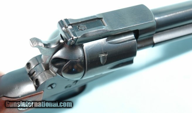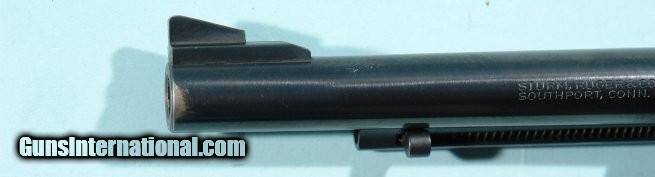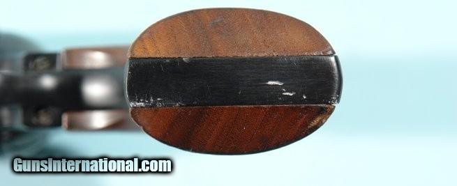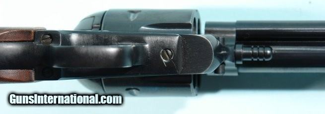 Description: EARLY 1968 RUGER OLD MODEL BLACKHAWK THREE SCREW .41 MAGNUM 6 1/2" BLUE S.A. REVOLVER. Serial number "12,8XX". Original factory blue and anodized finish on trigger guard/ backstrap at 98% with balance from holster wear(muzzle) triggerguard bow and base of butt along with some very small dings from use. Excellent screws. Perfect working order. Ejector rod housing a faactory replacement. Mint bore and chambers. No transfer bar upgrade has been done. SOLD Curio/Relic: Yes Handgun Caliber: .41 Remington Magnum |