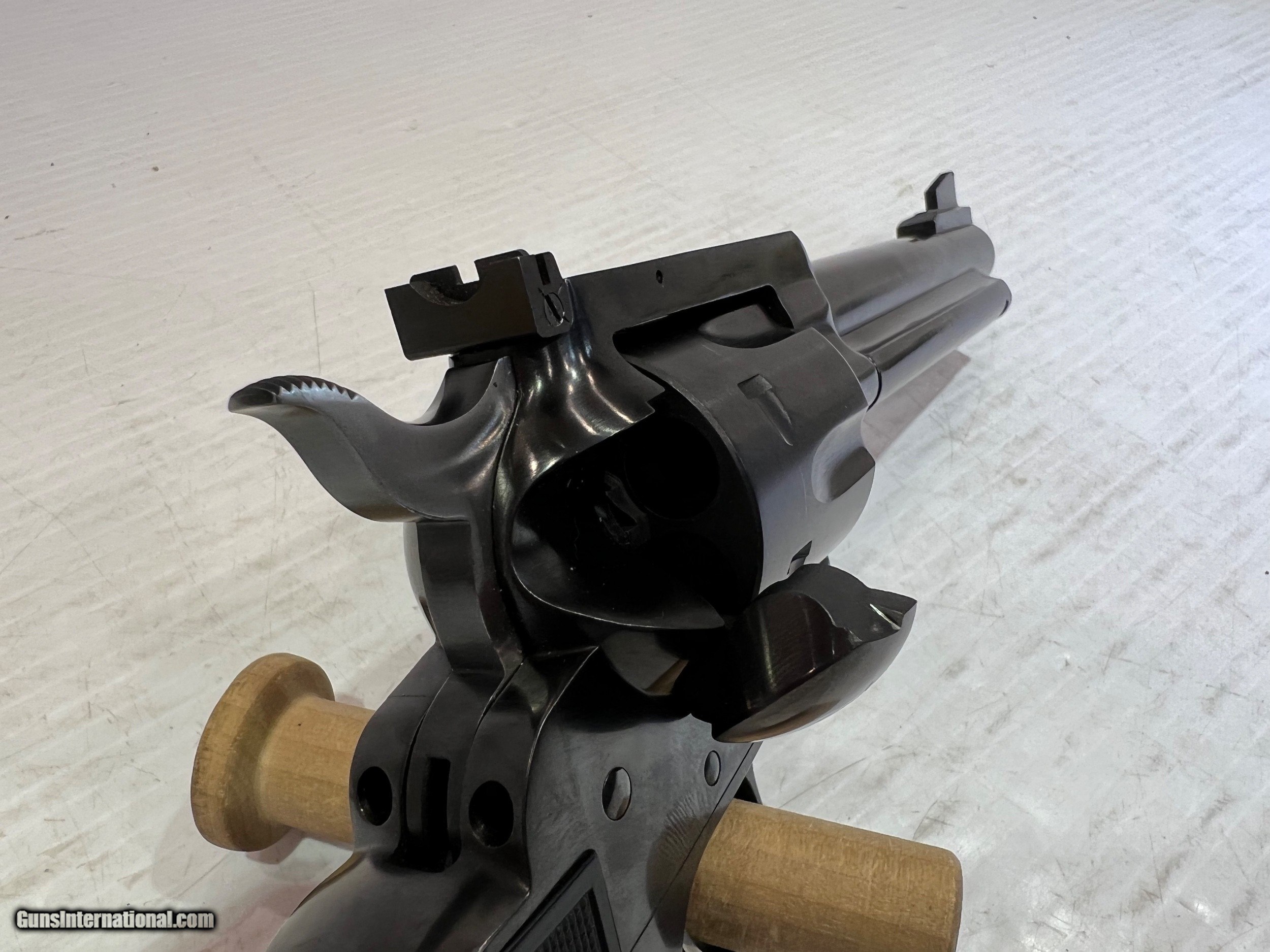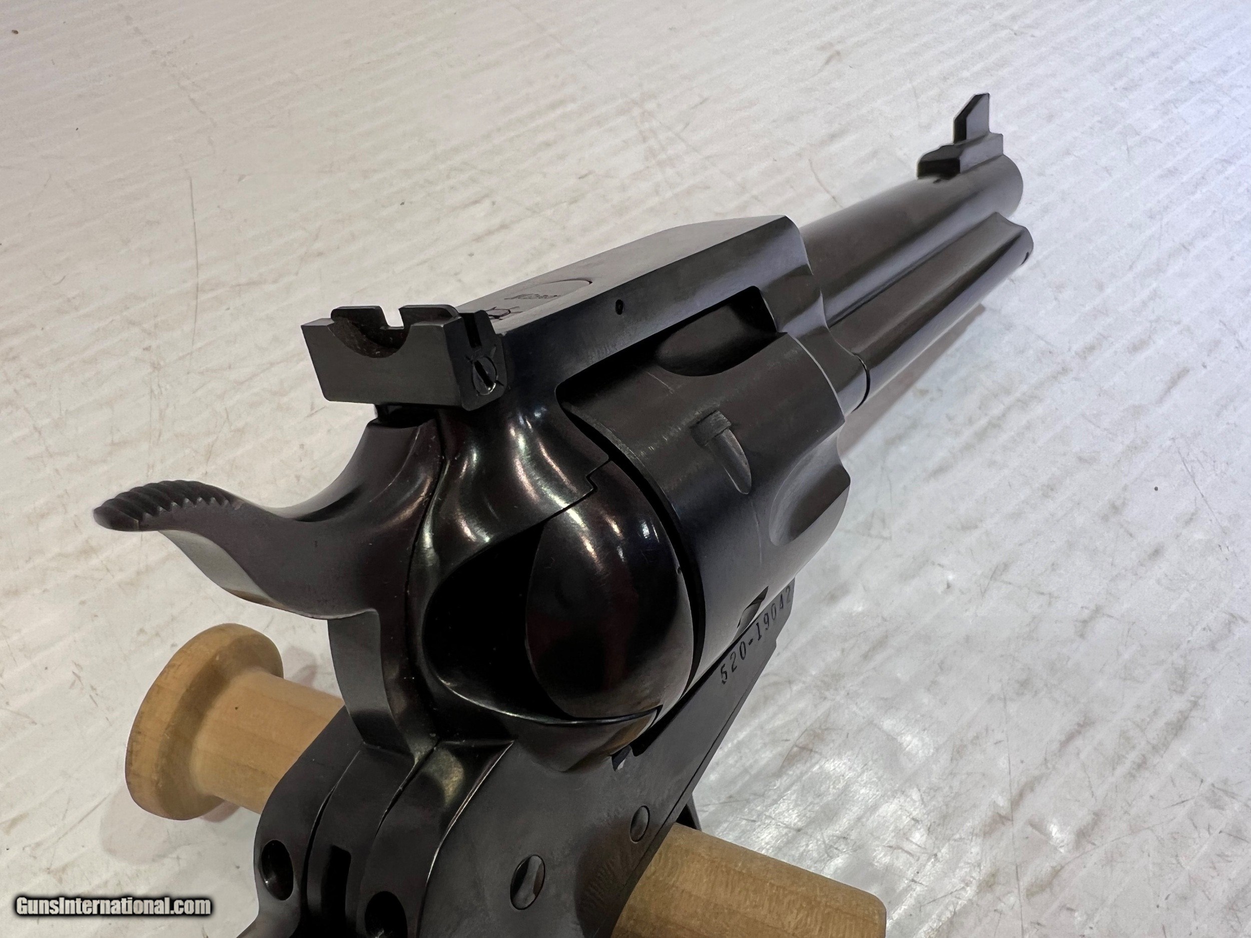 Description: Like New Ruger Blackhawk .44 Special, Single Action Revolver, 5.5" Barrel Blued Finish, Black Grips, 6-round Cylinder, No Box. WE DO NOT SHIP INTERNATIONALLY $30 Shipping. Pictures are of the item listed. Must be shipped to an FFL holder. The item is on display at our shop but will be taken off the shelf once the starting is met. Please feel free to contact us directly. Three day inspection from date items arrives at your FFL. Payment may be personal or cashiers check, money order or credit card "3% surcharge for credit card". QUESTIONS? CALL/TEXT STEVE AT 580.327.7372 SOLD Handgun Caliber: .44 Special Serial Number: 520-19042 ZZ18693 |