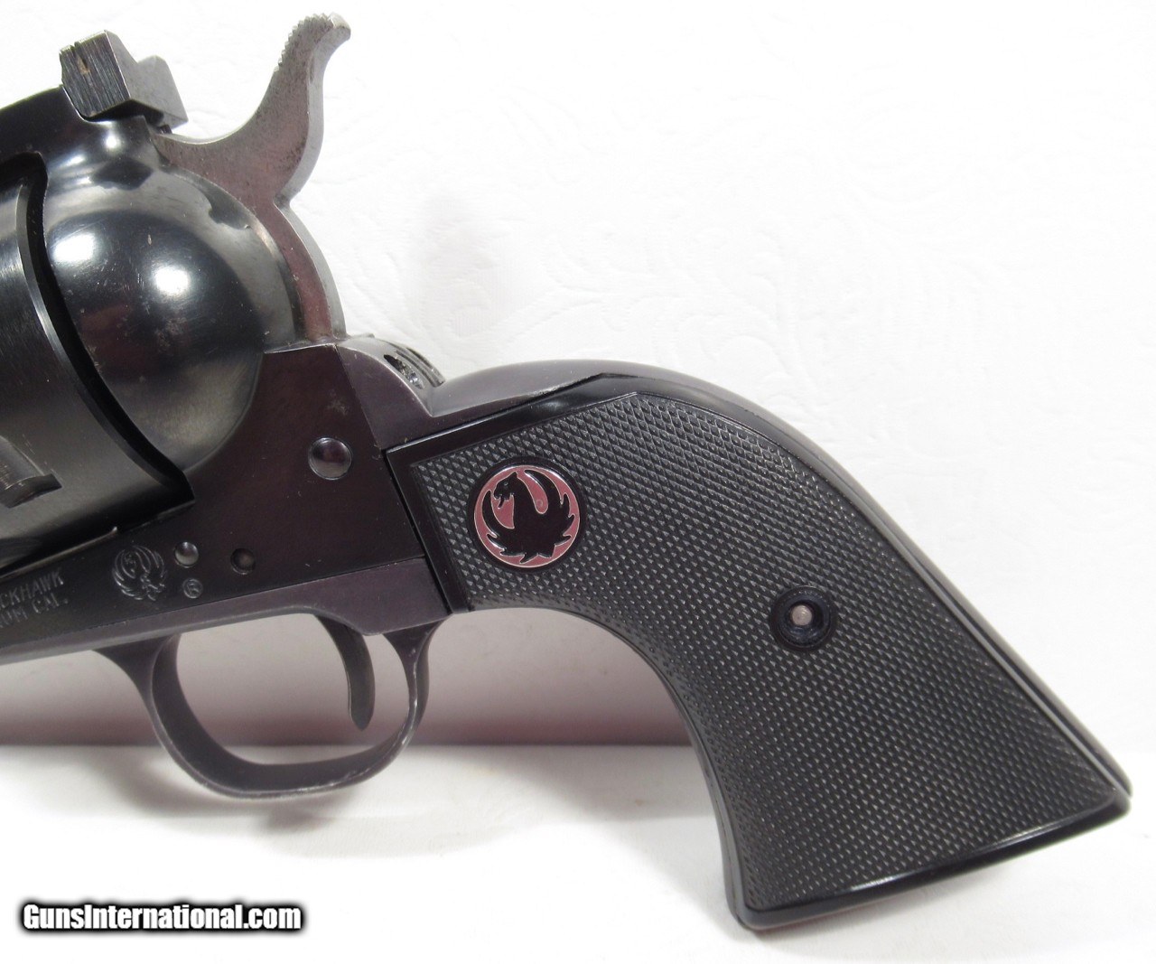 Description: Ruger Blackhawk 44 Mag. Flat Top Revolver; Serial No. 26709; Made in 1961; 44 Magnum Cal. with 6 ½” Barrel; most Original Metal Finish Remains with light pitting on left side of barrel near muzzle; Nice Original Grips; Perfect Action & Bore; See All Photos for Condition; No Texts. Call or Email Only; PERSONAL PROPERTY of Harold Wieser; Price: $675 + $45 S&H Via FedEx Express; Price includes insured shipping; return policy: three days inspection from the date the item is received; full refund of shipping both ways ONLY IF THE ITEM IS MISREPRESENTED. SOLD Manufacturer: Ruger Model: Blackhawk Serial Number: 26709 |