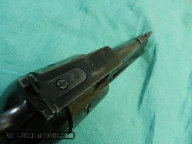 Description: A solid early Ruger Blackhawk made about 1956 with a SN 4293. This revolver has holster wear, but locks up good with a 4 1/2" barrel , with a clean shiny rifled bore. The Ruger black hard rubber grips are very good with about no wear. Gun was used for Cowboy Action Mounted Shooting, and .38 spec rounds were used. The exterior finish is about 35% blue with the remainder a smooth grey. Some were to finish on the front of the trigger guard from being holsteredes with a front ramp sight and rear adjustable sight. To buy a gun from me you must get a direct email for me, with details, and shipping cost. We don’t have asite .I prefer money orders or a check. Item ships when funds come in. If you can only pay with a card let me know. I’m sorry I don’t list my phone number, did that for 30 days, never again.. I can’t talk on the phone all day…who will ship the guns? I’m just one person, and it’s very busy here! I do a brisk volume! I hope you like my wide selection of unusual guns, knives and gun parts. Shipping price determined by zip code. I try to keep the prices affordable, which means I make less money than most dealers. You won’t get altitude sickness with my prices! I consistently have the best selection of older guns If you attempt to buy, you must still contact us for details, buying doesn't end the sale, it just sends an email telling us you want to buy this gun. A phone call won’t secure a sale! Not home many times, the first buyer by email buys the gun !Thissite does not close down a sale when you do a BUY! I can get six buys in an hour, first buyer to email gets the guns, others are in second place! Best to send another email . Sometimes not home to get calls. Some guns are required shipment to a gun dealer near you for a transfer to you when it arrives. With the widest selection of older guns at great prices, We don’t have a store, and sell on the internet only. Thank You. SOLD Curio/Relic: Yes |