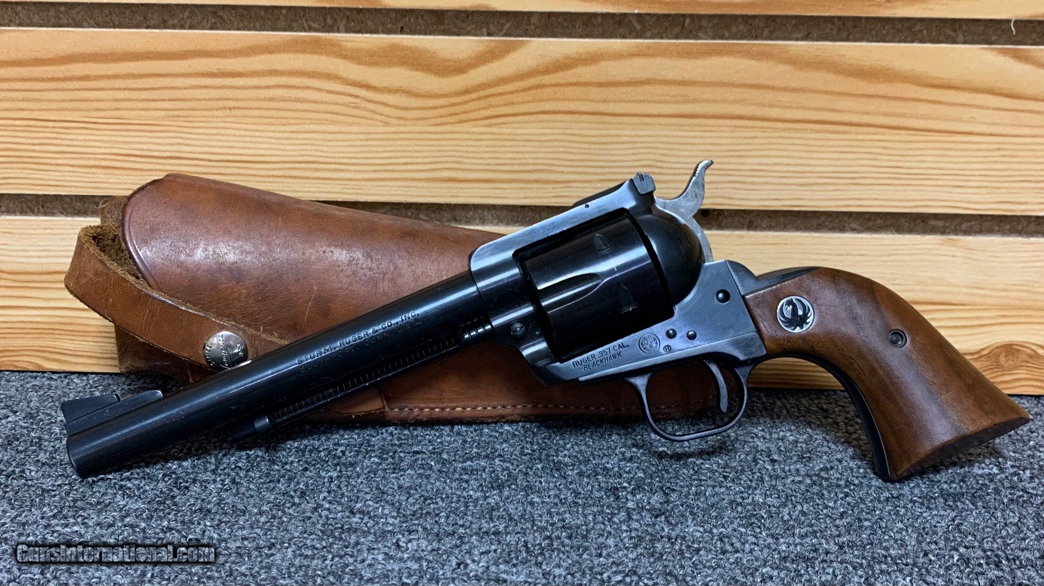 Description: Guns Listing ID: 462563 Normal wear and tear. See pictures. Comes with leather holster SOLD Manufacturer: RUGER Model: BLACKHAWK Condition: Used - Non-Certified Barrels: 6.5 Gauge Info: .357 MAG Finish: wood |