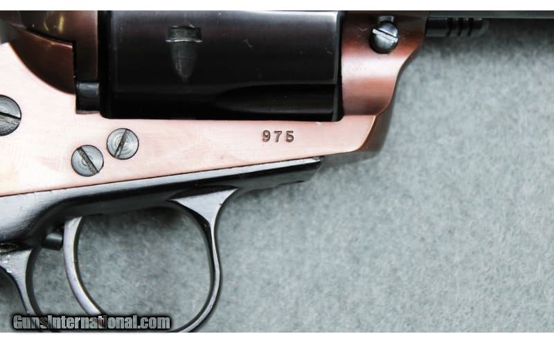 Description: Ruger Blackhawk single action revolver chambered in .357 Remington Magnum. The serial number (975) indicates that the revolver was produced in the first year of production in 1955. No accessories. .357 Magnum SOLD Metal Condition: Very Good with Minor Handling Marks Wood Condition: Very Good with Minor Handling Marks Bore Condition: Bright And Clear with No Pitting Barrels: 4.5 inch Weight: 2 Lbs 6 Oz Item Location: Fort Worth, TX |