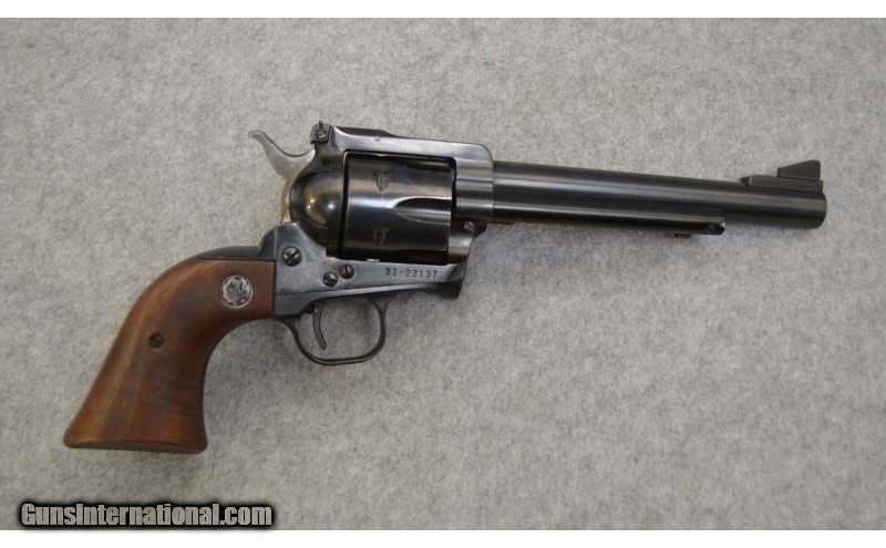 Description: The Ruger Blackhawk is a six-shot, single-action revolver chambered in 357 magnum, and is a 3 screw revolver. This pistol is in excellent condition. .357 Mag./ .38 Special SOLD Chambers: 357 magnum Metal Condition: Excellent Wood Condition: Excellent Bore Condition: Bright and shiny Barrels: 6.5" barrel Triggers: Crisp Weight: lb 8 oz Sights: Iron sights Item Location: Huntsville, AL |