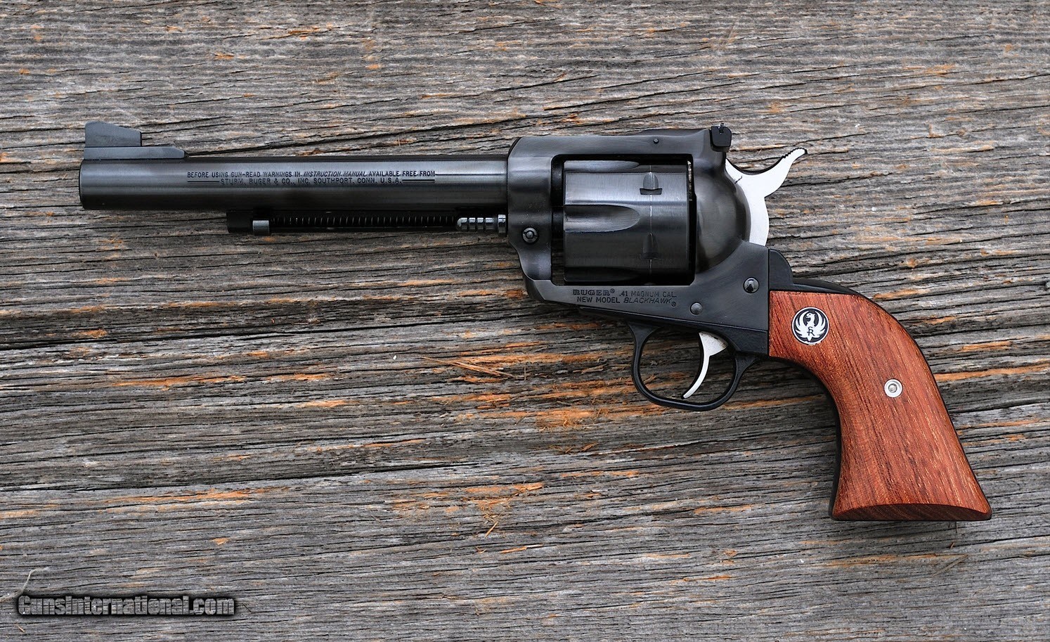 Description: Ruger - Blackhawk - .41 Mag - Item Number: RUG48-01820 Barrel length: 6.5 Finish: Blue Lop: NA Lbs: |/22| Ozs: 12 Overall condition: Very Good Stock condition: Very Good Metal condition: Very Good Stock:Original Metal:Original Type of Case: Maker's Plastic Case Manufactured in: USA Comments: Very clean gun. HG-23 SOLD |