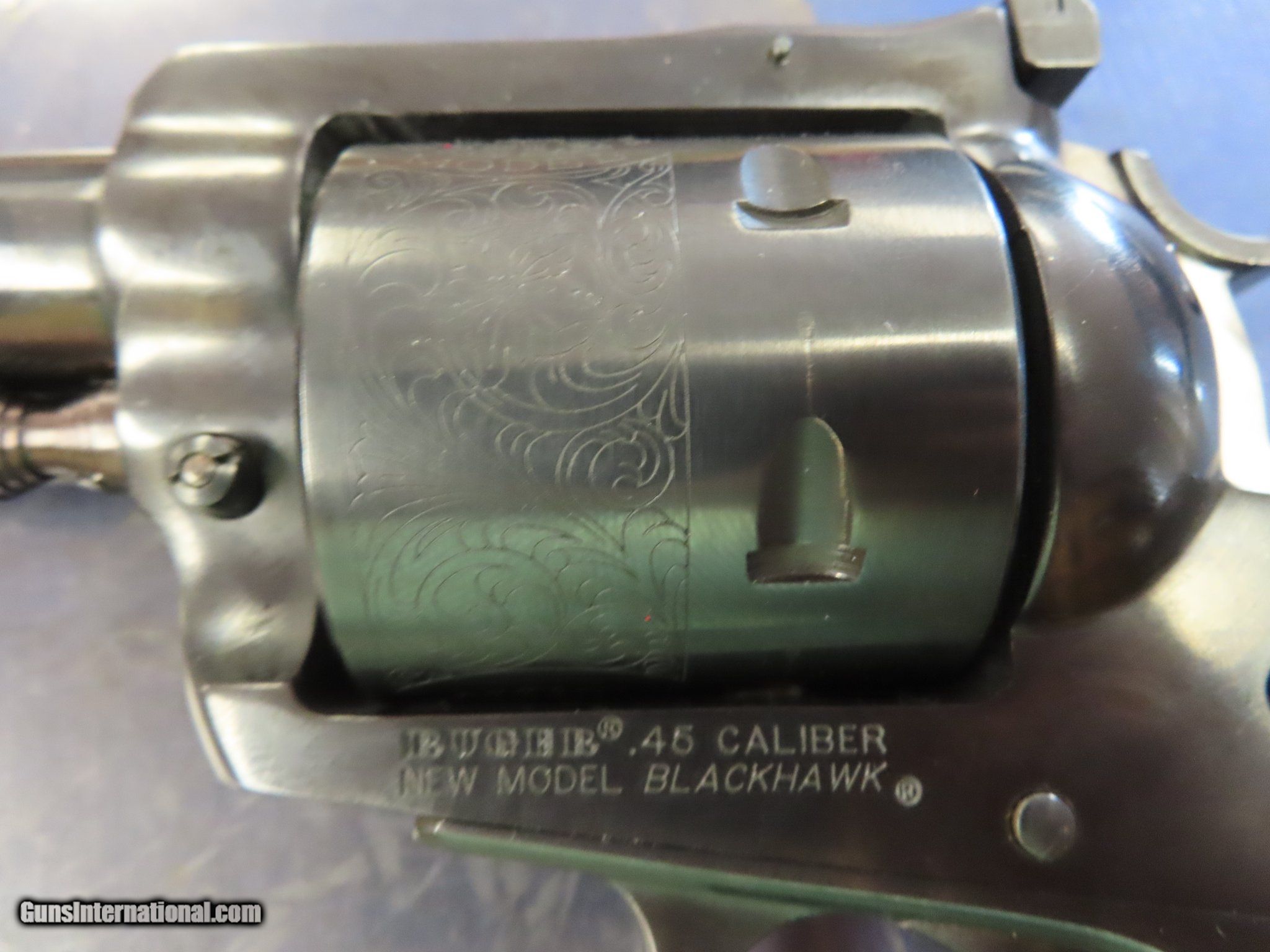 Description: Guns Listing ID: 1410275 Ruger New Model Blackhawk .45lc. Gun comes with engraved cylinder and original box. In good shape. SOLD Manufacturer: RUGER Model: BLACKHAWK Caliber Info: .45 COLT Condition: Used - Non-Certified Barrels: 8 BARREL |