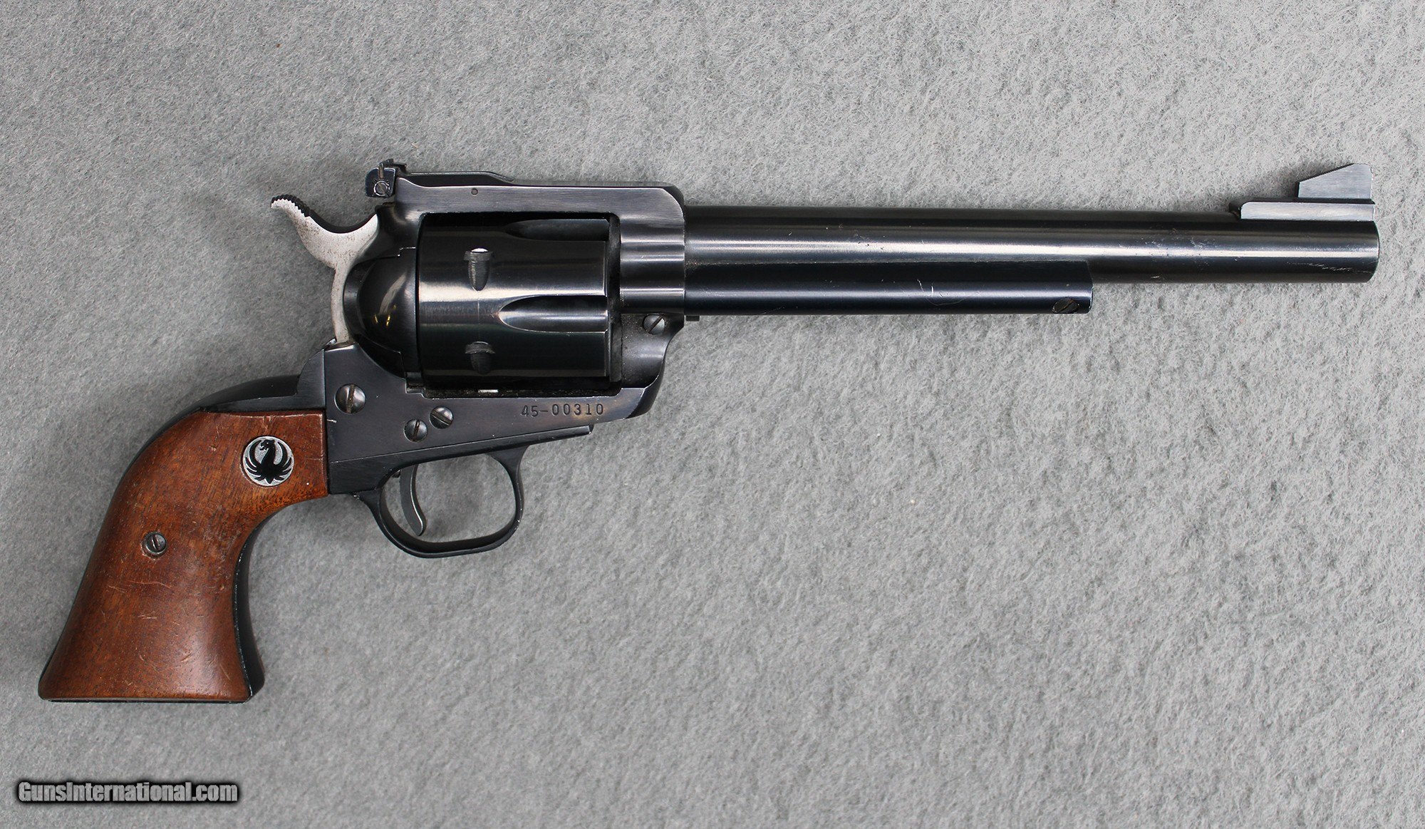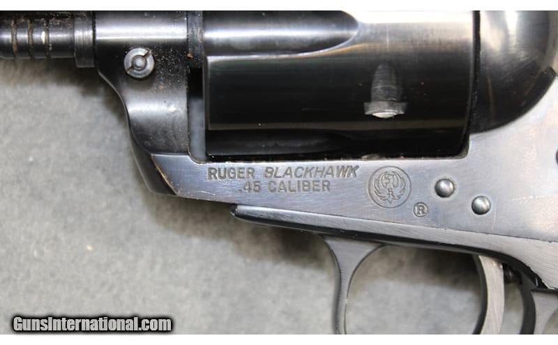 Description: Ruger Blackhawk single action revolver chambered in .45 Colt. "45-" serial number prefix suggests it was produced in 1971. 7-1/2 inch barrel with fixed front sight and micrometer adjust rear sight. Blued finish. Smooth walnut grip panels with inlaid Ruger medallions. No accessories. .45 Colt Metal Condition: Very Good with Minor Handling Marks and Areas of Light Pitting Wood Condition: Very Good with Minor Handling Marks Bore Condition: Bright with No Pitting Barrels: 7.5 inch Item Location: Fort Worth, TX Price: $799.99 Contact Seller |