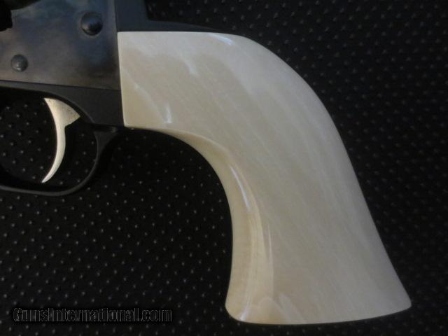 Description: New Unfired (except any factory testing), Ruger Blackhawk dual cylinder 45LC/45ACP, 4 5/8", with genuine real pre-ban ivory (letter authenticating same included). Superb bone and charcoal case hardening. Has the upgraded Super Blackhawk hammer, case hardened as well. Includes factory box. Ivory carving/CC work by Classic Single Actions.......superb work. You've not likely seen one of these recently nor likely to see another in the near future. From my FFL dealer to yours. Shipping/transfer flat $55 (this is the cost my dealer charges). No shipping to California, NY, or any location prohibited by law. US sales only. SOLD |