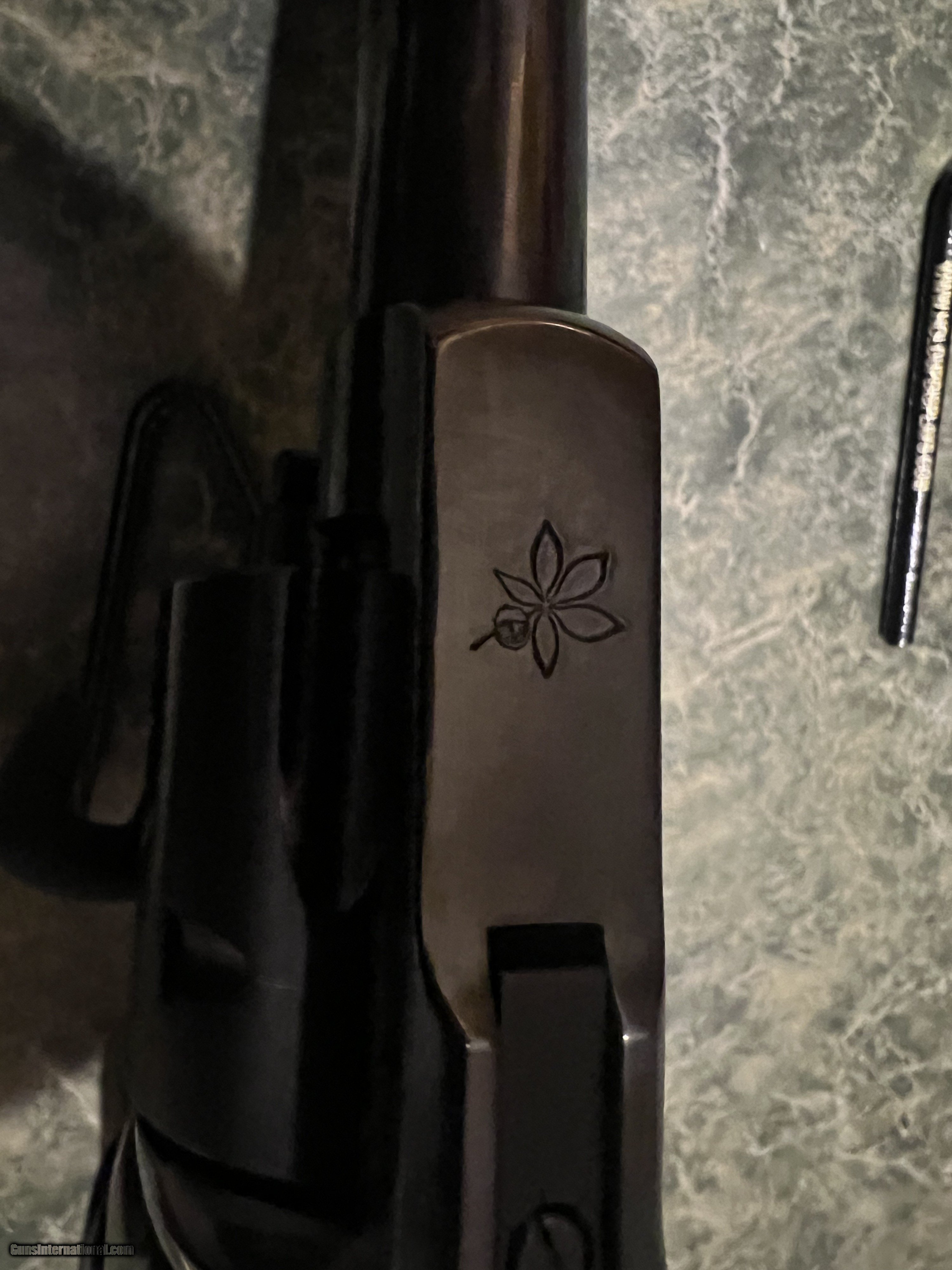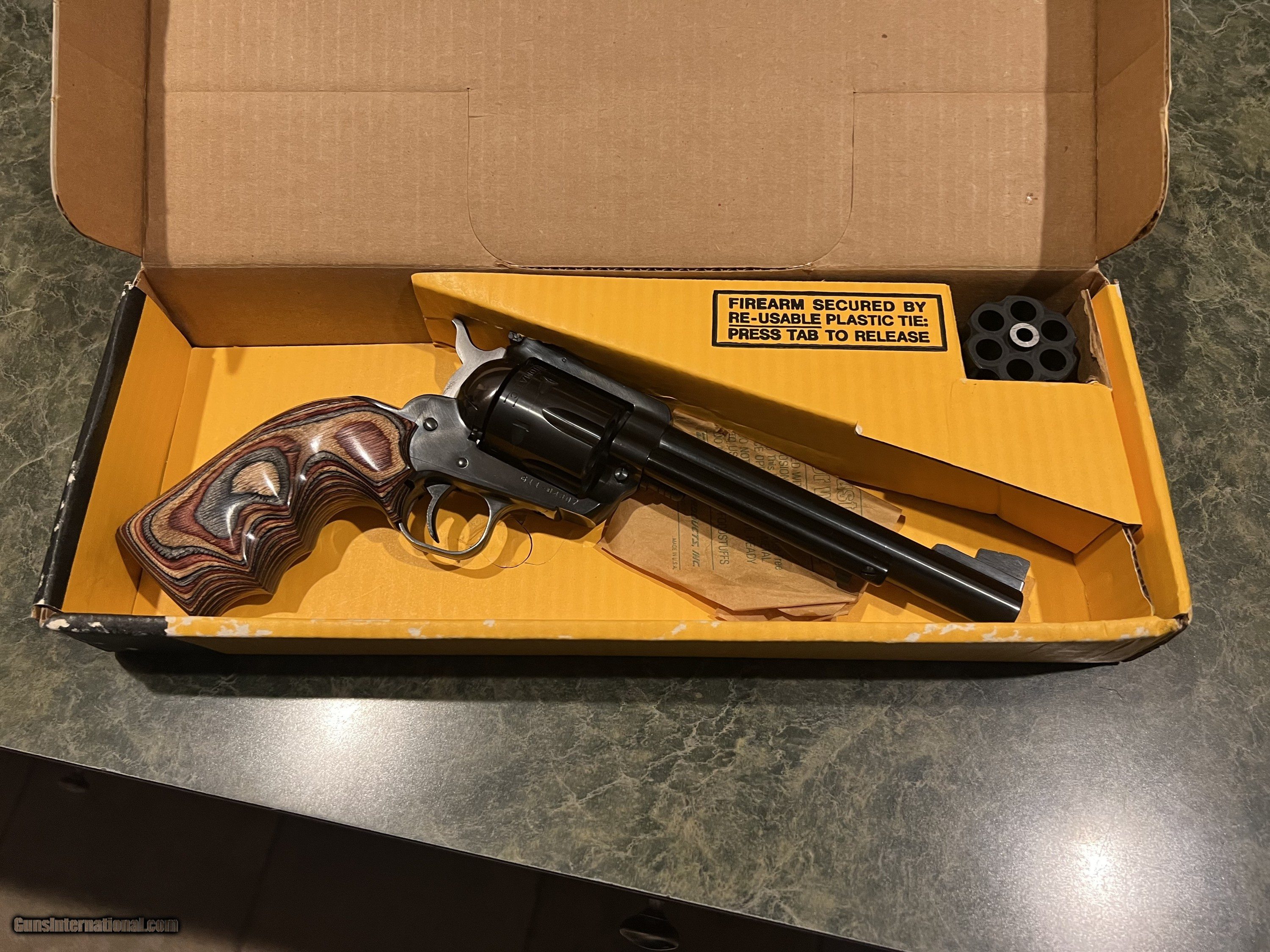 Description: Here's a nice lightly used Ruger New Model Blackhawk Buckeye Special 38-40 win and 10mm with two cylinders, exc bore, 6 1/2" barrel, adjustable rear sight, nice custom laminated fingergroove grips, with it's original box but no outer sleeve. 75.00 UPS shipping 2.99% credit card fee PA residents add 6% sales tax. Handgun Caliber: .38-40 Winchester (.38 WCF) Price: $1,295.00 Contact Seller |