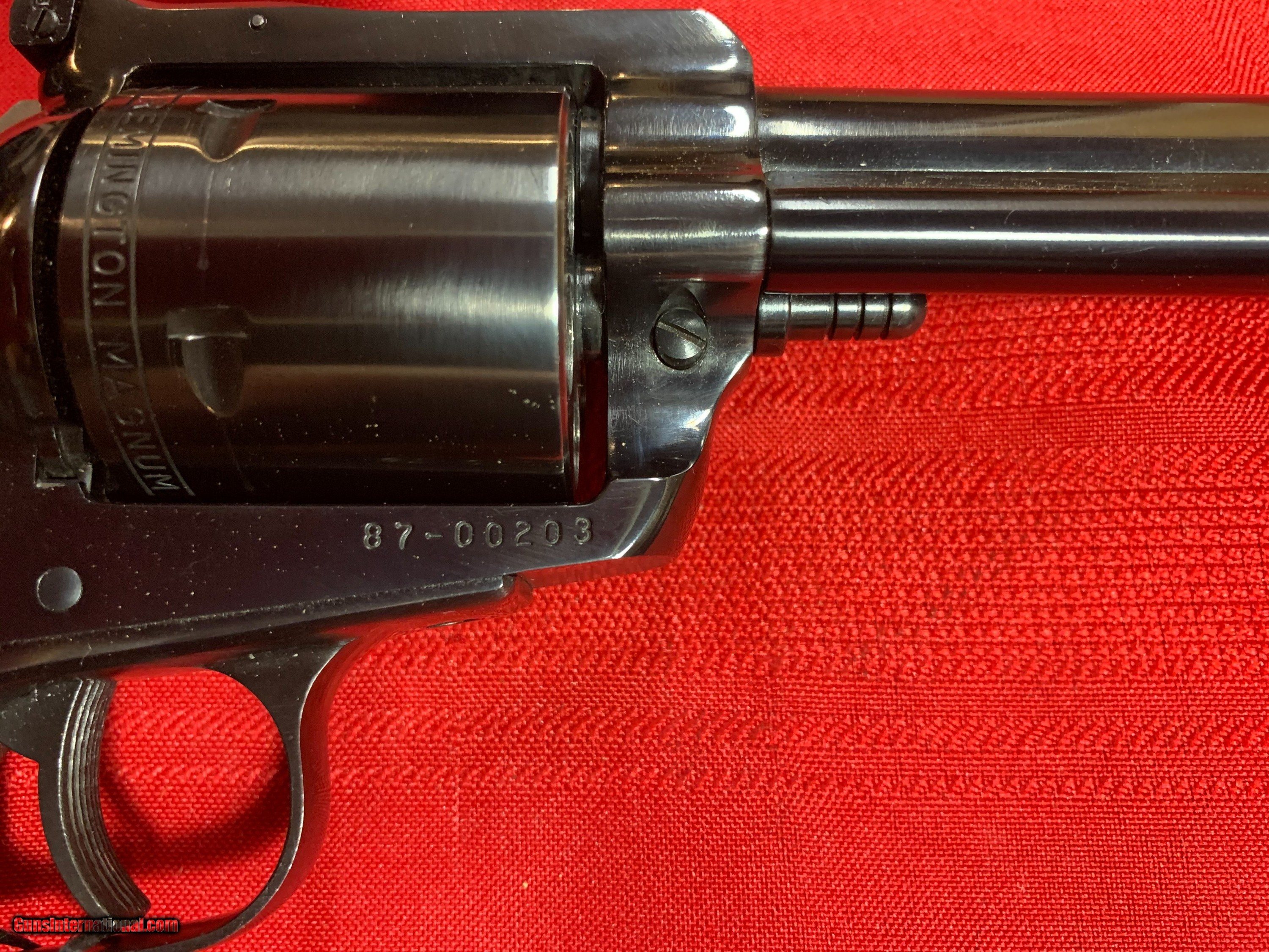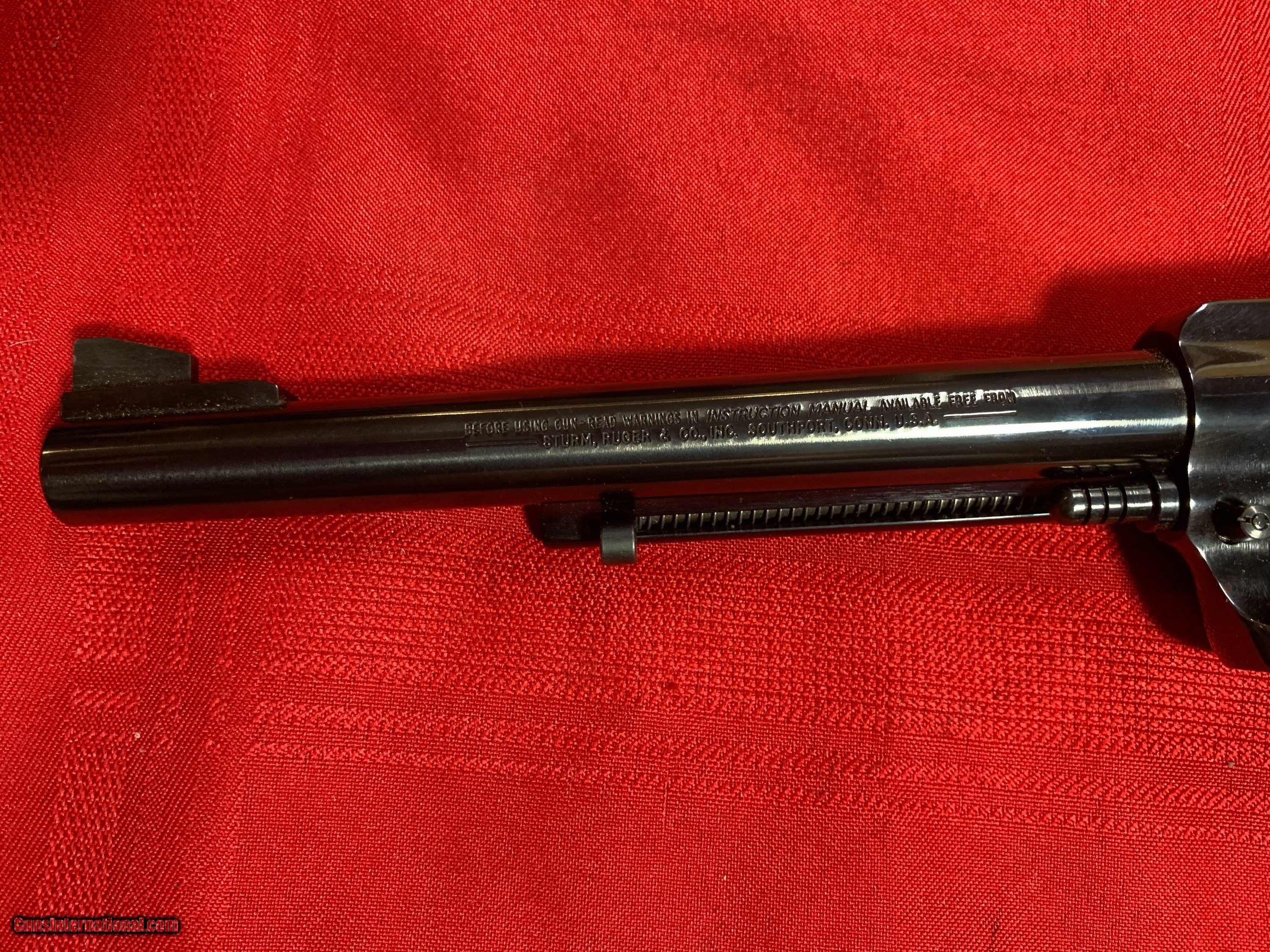 Description: DOB 1990 Ruger Blackhawk Convertible. 44 Mag./44 Spl. Like new. Slight drag line on Mag. cylinder, almost no line on SPL. Blue excellent, grips excellent, mechanics excellent. No box. SOLD Handgun Caliber: .44 Special, .44 Remington Magnum |