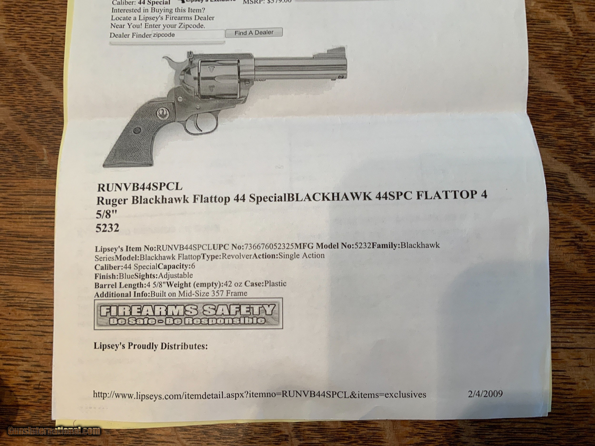 Ruger Blackhawk Flattop 44 Special Lipsey’s 2010