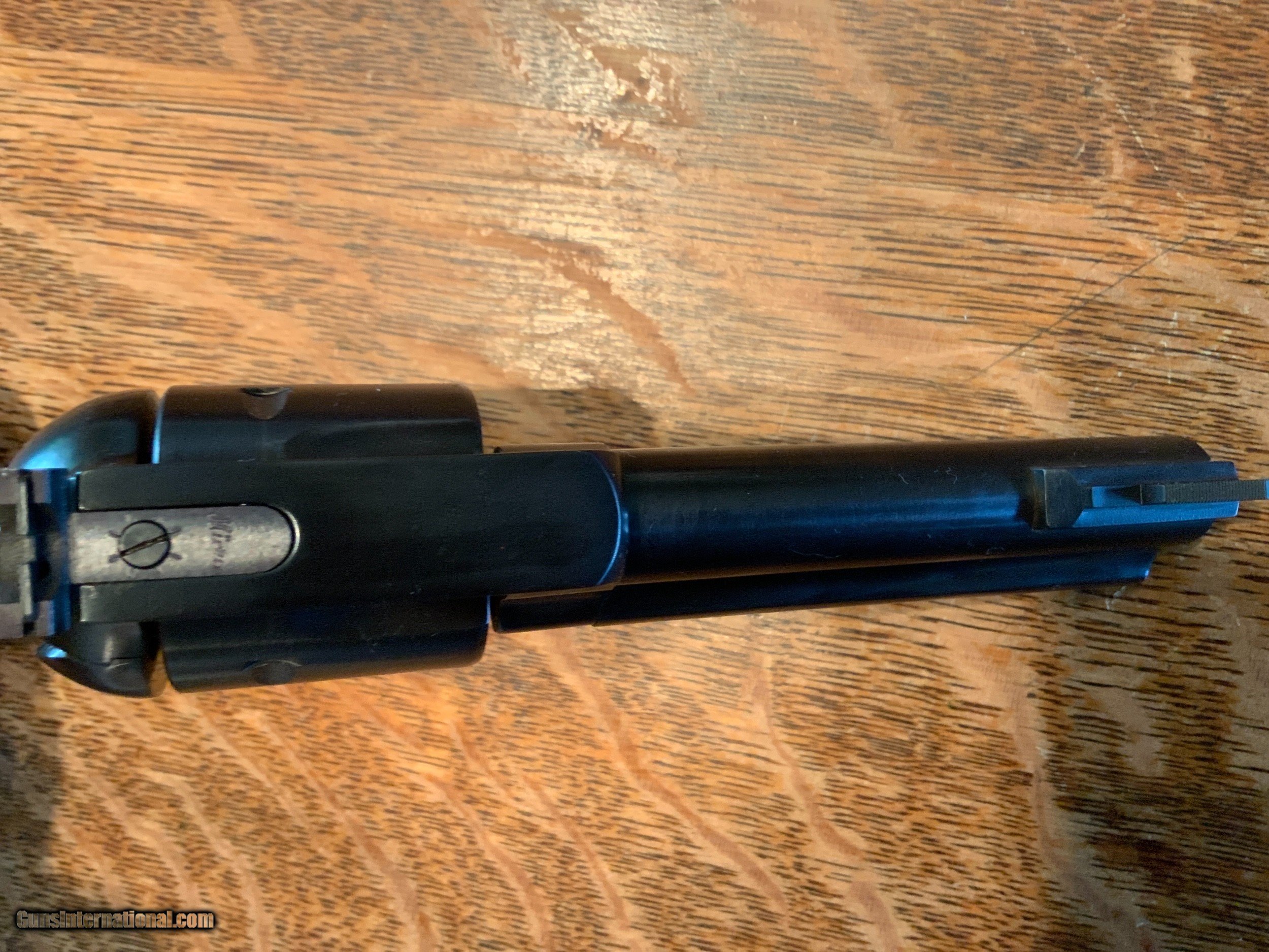 Description: (Sale Pending)Ruger Blackhawk flattop in 44 special caliber with the 4 5/8 inch barrel. This is the early run for Lipsey's with the blued finish. This single action revolver remains unfired in the original box with all the paperwork and lock. Very neat little revolver that screams Elmer Kieth. Research says this is a 2010 release but sales receipt shows July 2009. Pictures tell the story. Please add $40 for shipping and insurance to your FFL. if your FFL will not except from a private party please add $20 to the cost of shipping to cover my dealers transfer fees. SOLD Handgun Caliber: .44 Special Manufacturer: Ruger Model: Blackhawk Barrel Length: 4 5/8 Inch Condition: Excellent Metal Condition: Excellent Wood Condition: Excellent Bore Condition: Excellent Action: Single Finish: Blued Manufacture Date: 2009 Extras: Box and Papers |