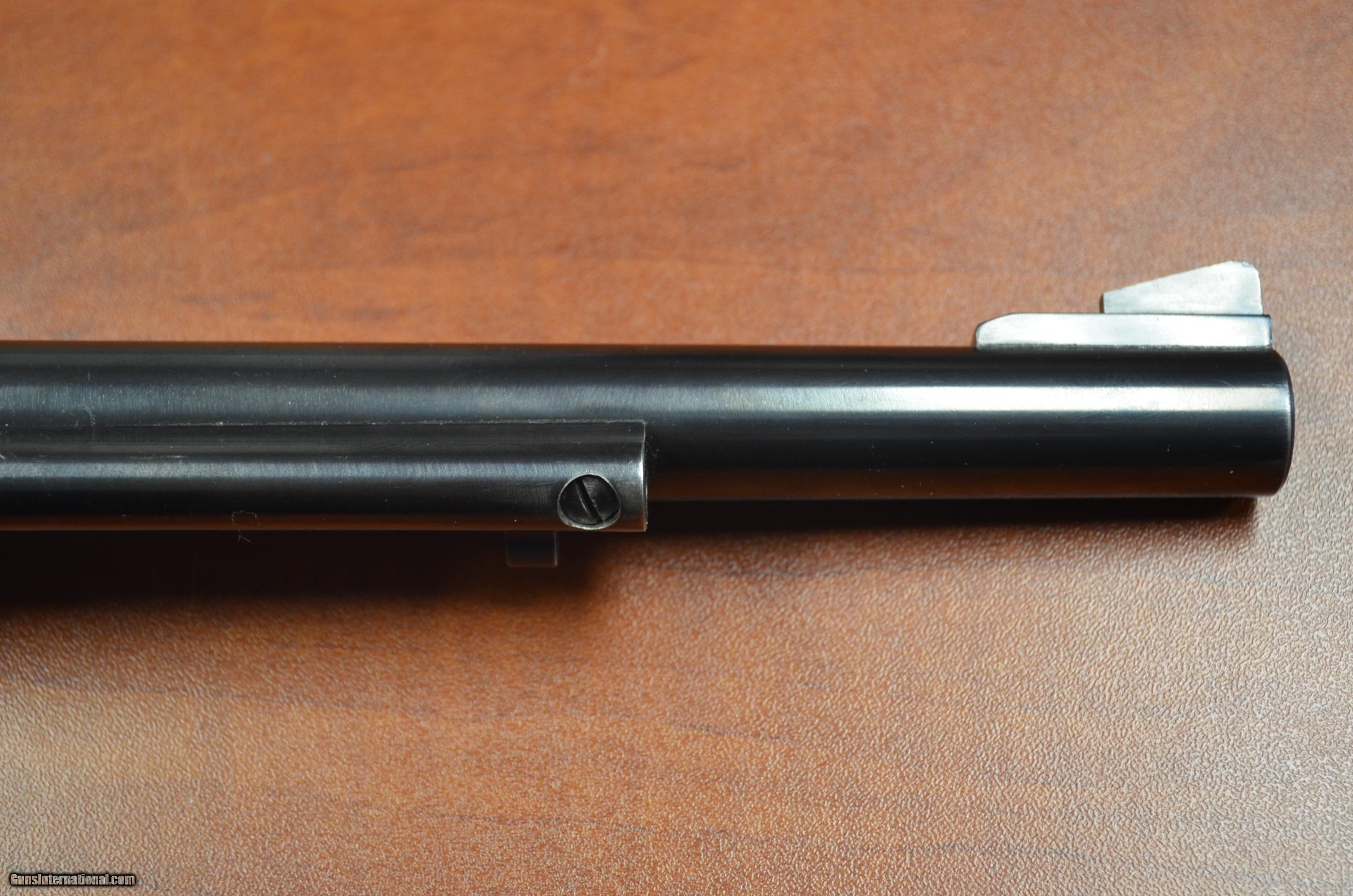 Description: Ruger Blackhawk 44mag 7.5” barrel- This revolver is an early 3 screw flattop Ruger Blackhawk made in the early 60s chambered in 44mag with the rare 7.5 in barrel. This is a Type 4 variant and serial number is 24xxx. The revolver has a blued finish with steel integral Micro adjustable sight. The finish shows some wear at muzzle and ring on the cylinder from use. The revolver has original walnut grips with Ruger logo. The grips show scratches and faded due to use. The revolver has a bright bore and strong grooves. Please call and ask for Jason in sales at 610.258.5500 Tuesday through Saturday 10am-5pm. All guns subject to sale in our retail location. SOLD Manufacturer: Ruger Model: Blackhawk Caliber Info: 44mag Bore: bright |