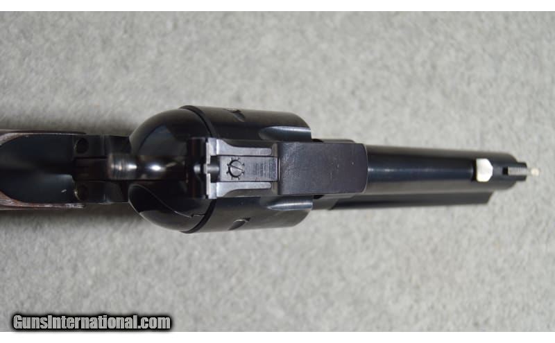 Description: Ruger Blackhawk Flattop Revolver chambered in the rarer .41 Magnum. The highly desirable 3-screw model features adjustable sights, and 4-click hammer. The serial number (3404) dates the revolver to 1956 and is un-modified by Ruger, so it still has the frame-mounted firing pin without transfer bar. .41 Remington Magnum SOLD Metal Condition: Very Good with Minor Handling Marks Wood Condition: Very Good with Minor Wear Bore Condition: Bright and Clear with Good Rifling Barrels: 4.75 inch Triggers: Single Action Butt Pad: Smooth Walnut with Ruger Medallion Weight: 2 lb 6 oz Sights: Adjustable Rear Item Location: Fort Worth, TX |