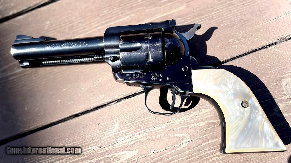 Description: Guns Listing ID: 556735 The Ruger Blackhawk is a six-shot, single-action revolver manufactured by Sturm, Ruger & Co. It is produced in a variety of finishes, calibers, and barrel lengths. SOLD Manufacturer: RUGER Model: BLACKHAWK (OLD MODEL) Caliber Info: .357 MAG Condition: Used - Non-Certified Barrels: 4.5 BARREL Finish: BLACK |