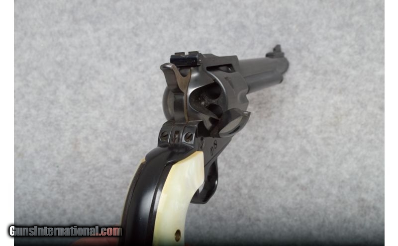 Description: SOLD Caliber Info: .41 Mag. Metal Condition: Very good; one scuff under barrel Bore Condition: Clean and sharp Barrels: 6 1/2 inches Triggers: Smooth; blued steel Stock: Mother of Pearl" grips Weight: 41 oz. Sights: Adjustable rear; ramp front Extras: Hogue black finger-groove rubber grips. Item Location: Sun Prairie, WI |