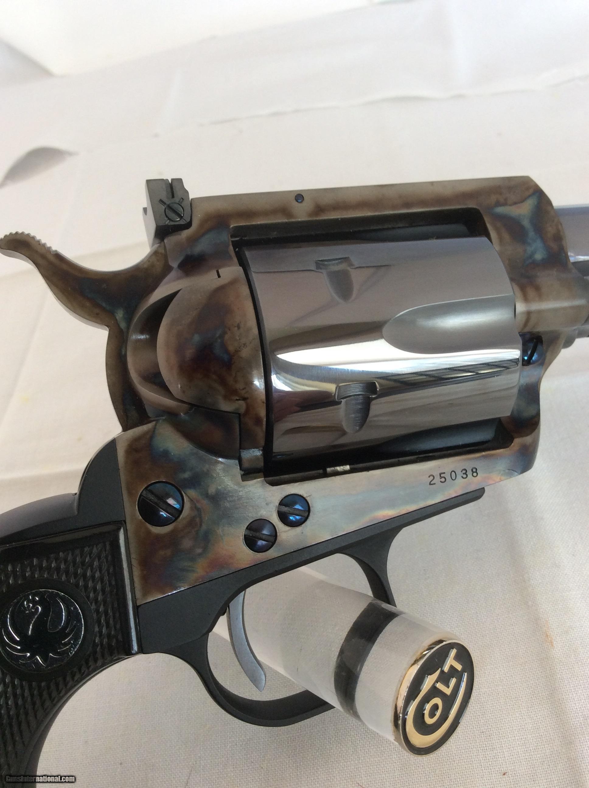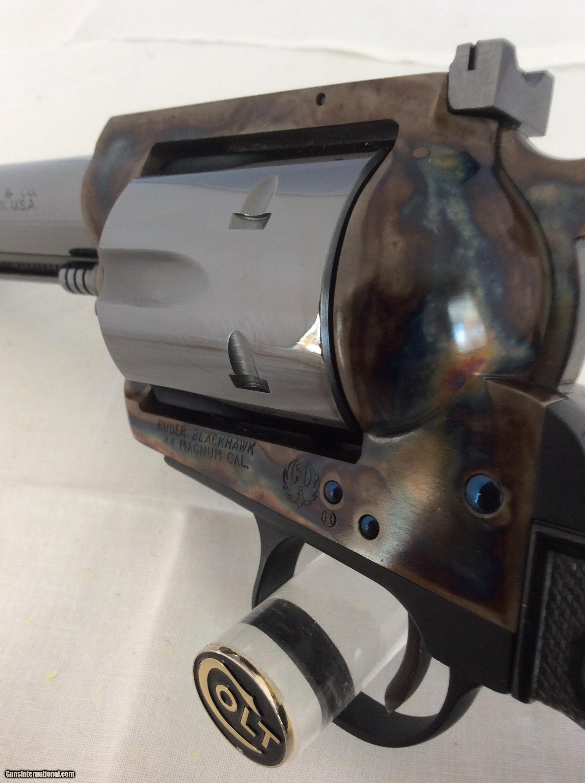 Description: Ruger Blackhawk Flat Top .44 Mag Turnbull Restoration from 1959 with original stocks. So what we have here is 100% restored by Turnbull case colored Ruger in the bullet proof Blackhawk design. I have owned and held several Turnbull Restorations but nothing compares to this one. The bluing “black” is a mirror finish and the case coloring is fabulous. Deep and rich. The grips are perfect and original. This is the nicest Blackhawk you will ever hold. It comes in a Ruger box but not original to the piece. Believe me it will be your new favorite pistol. Pictures do not do this one justice. FFL to FFL transfer, Ships free. Any kind of checks work and we also accept credit cards with a 3% surcharge. Please check out my other listings. Visit us at packarms SOLD Manufacturer: Ruger Model: Blackhawk Caliber Info: .44 Mag Condition: 99% Metal Condition: 99% Wood Condition: 99% Bore Condition: 99% |