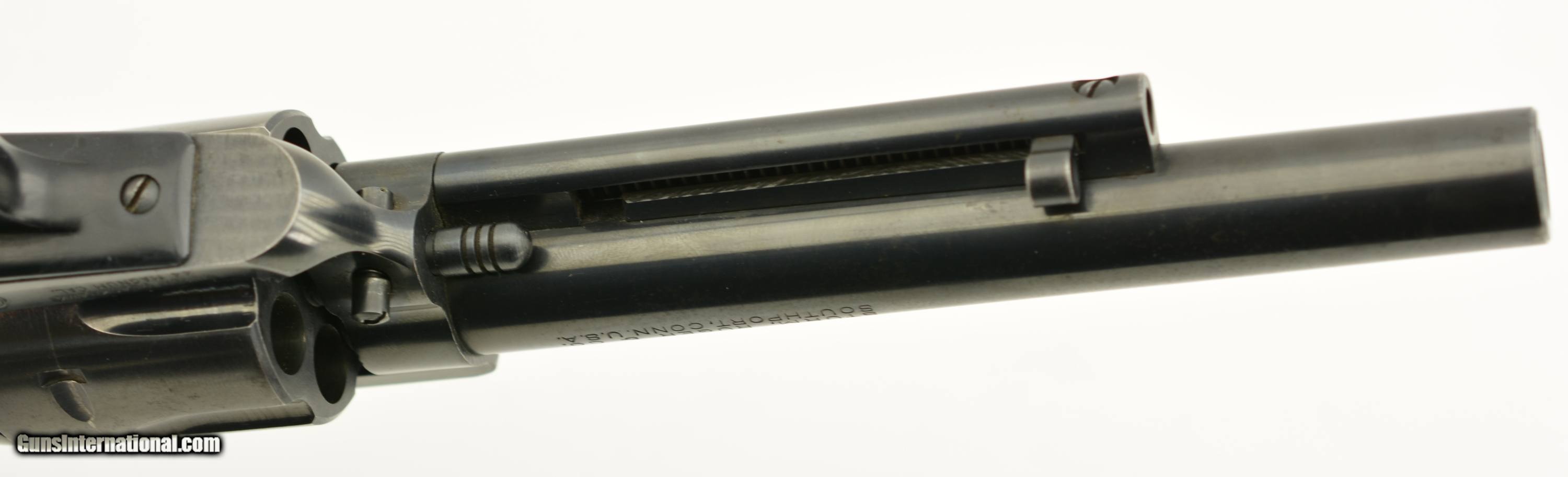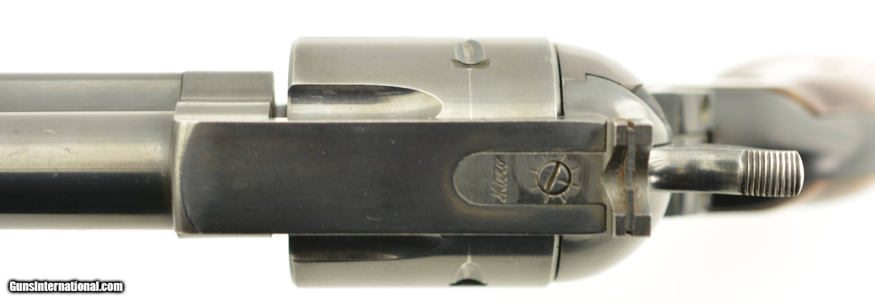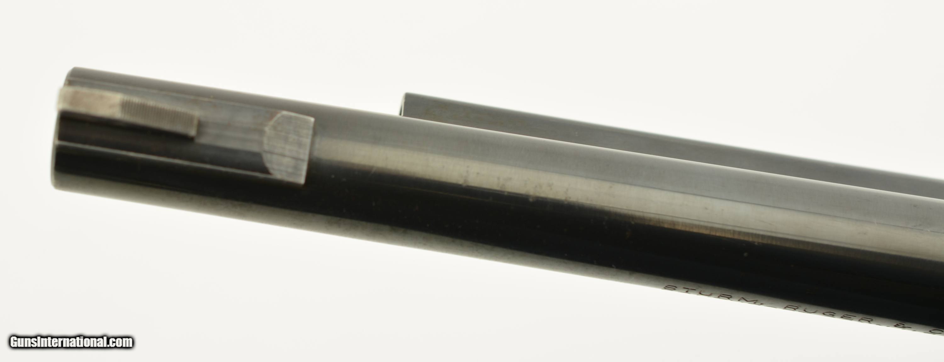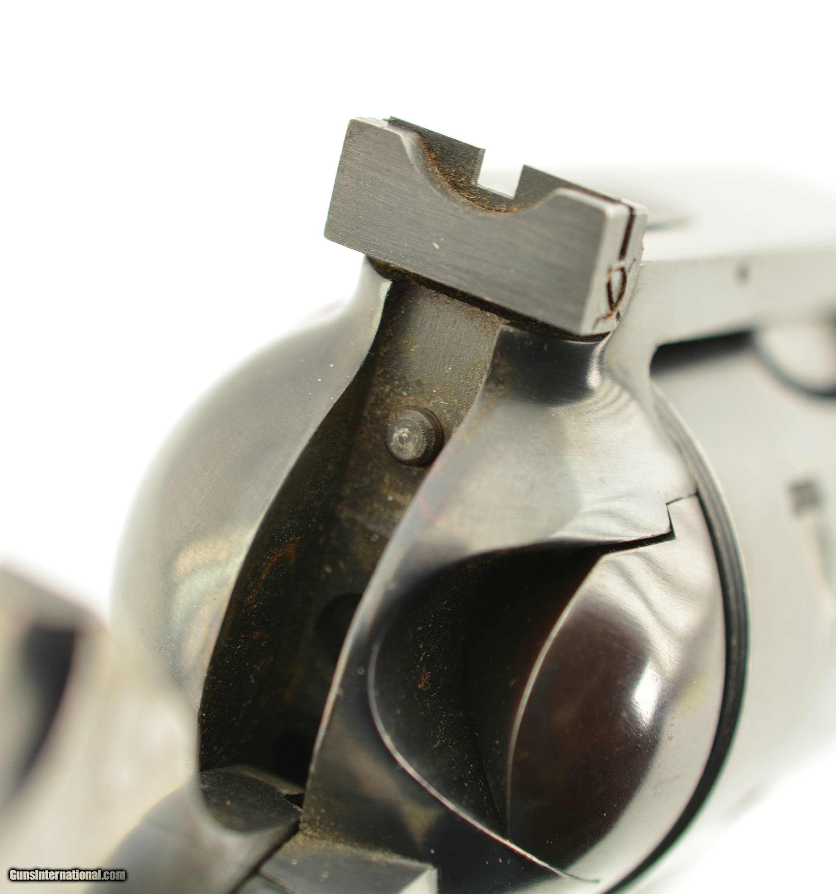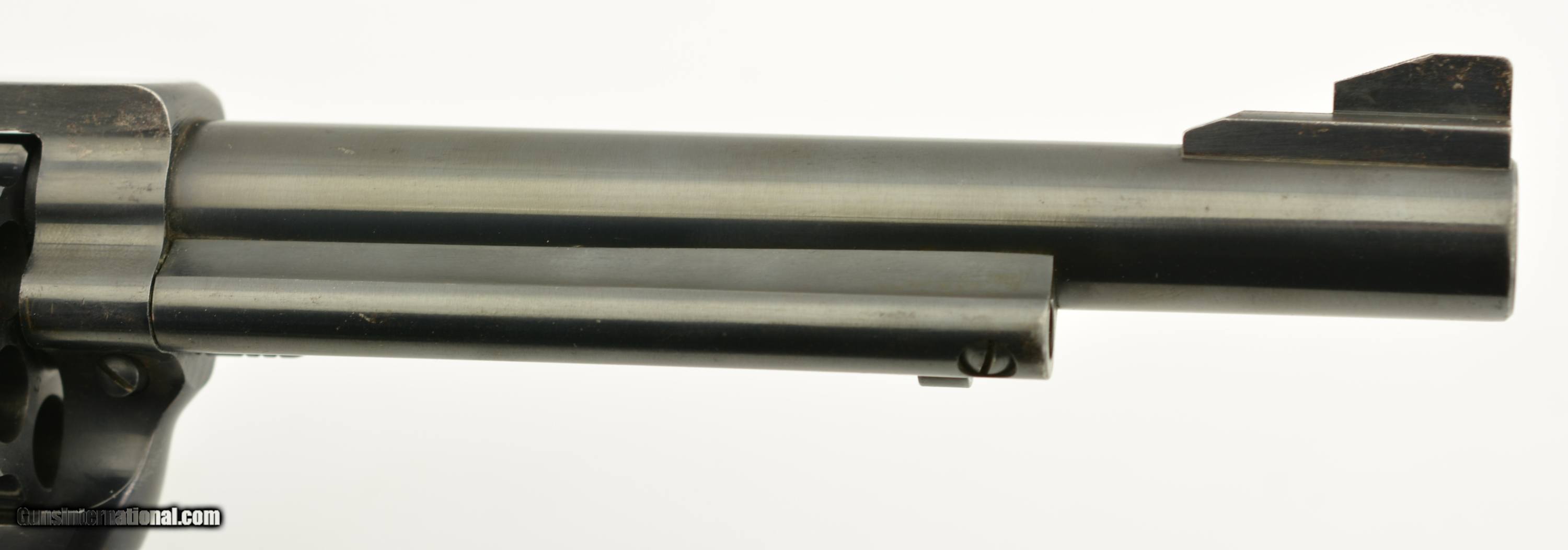 Description: Serial #2065, .44 Rem Magnum, 6 ½ inch barrel with a bright, excellent bore. This is a second year Ruger “Flattop" Blackhawk revolver manufactured in 1957 and is the second Variation with Walnut grip panels and round concave Type 2 ejector rod thumbpiece. It is equipped with the standard adjustable Micro rear sight the base of which is flush with the flat top of the frame. The early Old Model is in excellent condition retaining about 93-95% of the original blue finish on the cylinder, barrel, and frame with a small patch of finish loss on the upper right side of the top strap, high edges on the cylinder with some scattered small use marks, small spots near the muzzle and front sight, a scratch on the right frame and finish loss on the hammer retaining screw head. The figured walnut grips are near excellent with some light contusions and other very minor use marks and flaking of the Ruger emblem. Mechanically it functions properly with tight lock up and does not have the transfer bar safety update. A great early flattop! FFL or C&R SOLD Curio/Relic: Yes Manufacturer: Ruger Model: Blackhawk Serial Number: 2065 Caliber Info: .44 Magnum Gauge Info: .44 Magnum |