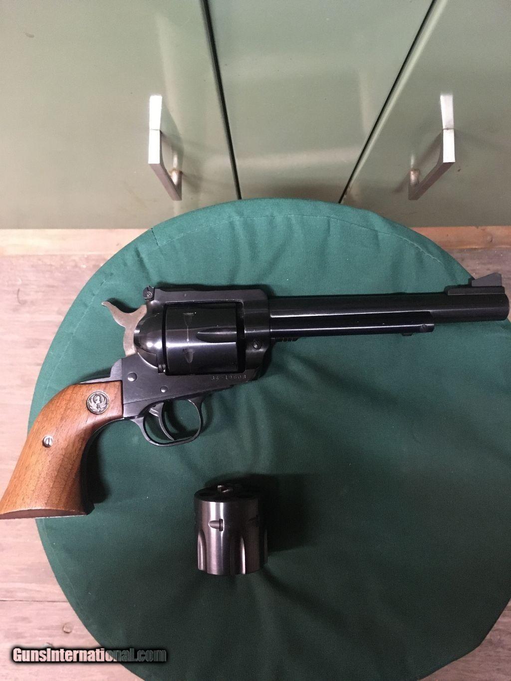Description: RUGER NEW MODEL BLACKHAWK CONVERTABLE 357 MAG AND 9MM-APPEARS TO HAVE LITTLE USE-BORE IS VERY GOOD-I WOULD CALL THE BLUING AT 98 %-SHIPPING TO YOUR FFL DEALER IS THIRTY DOLLARS. SOLD Manufacturer: RUGER Model: NEW BLACKHAWK Caliber Info: 357-9MM Condition: 98 % Metal Condition: GOOD Wood Condition: GOOD Bore Condition: GOOD Finish: BLUE Sights: OPEN-ADJUSTABLE |