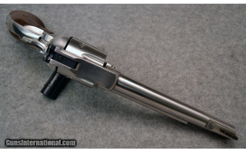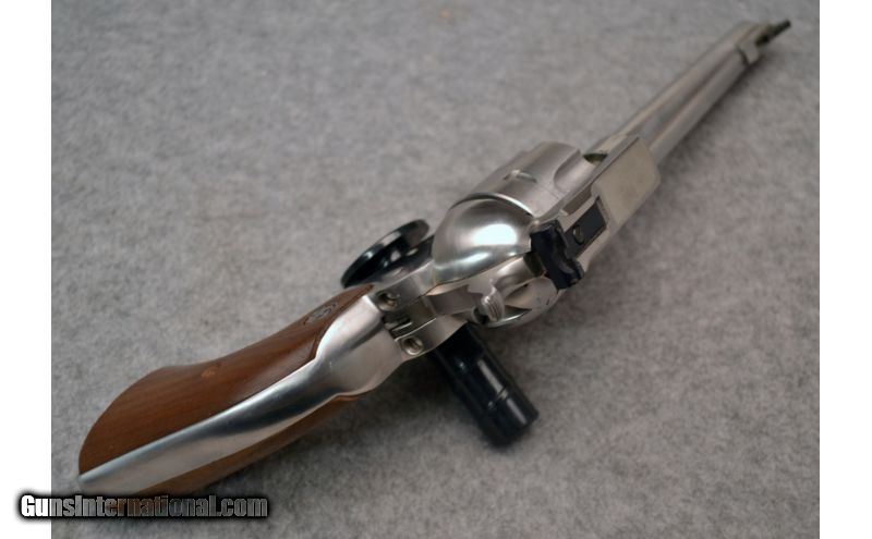 Description: Excellent overall condition with a couple of finish blemishes under the barrel. This firearm comes with a leather holster. SOLD Manufacturer: Circa 1981 Caliber Info: .357 Magnum Metal Condition: Excellent with a couple of marks on the barrel Wood Condition: Excellent Bore Condition: Excellent Barrels: 6.5 Triggers: Single action Stock: Smooth wood grips with Ruger medallions Sights: Fromt fixed ramped blade, rear adjustable square notch sight Item Location: Christiana, DE |