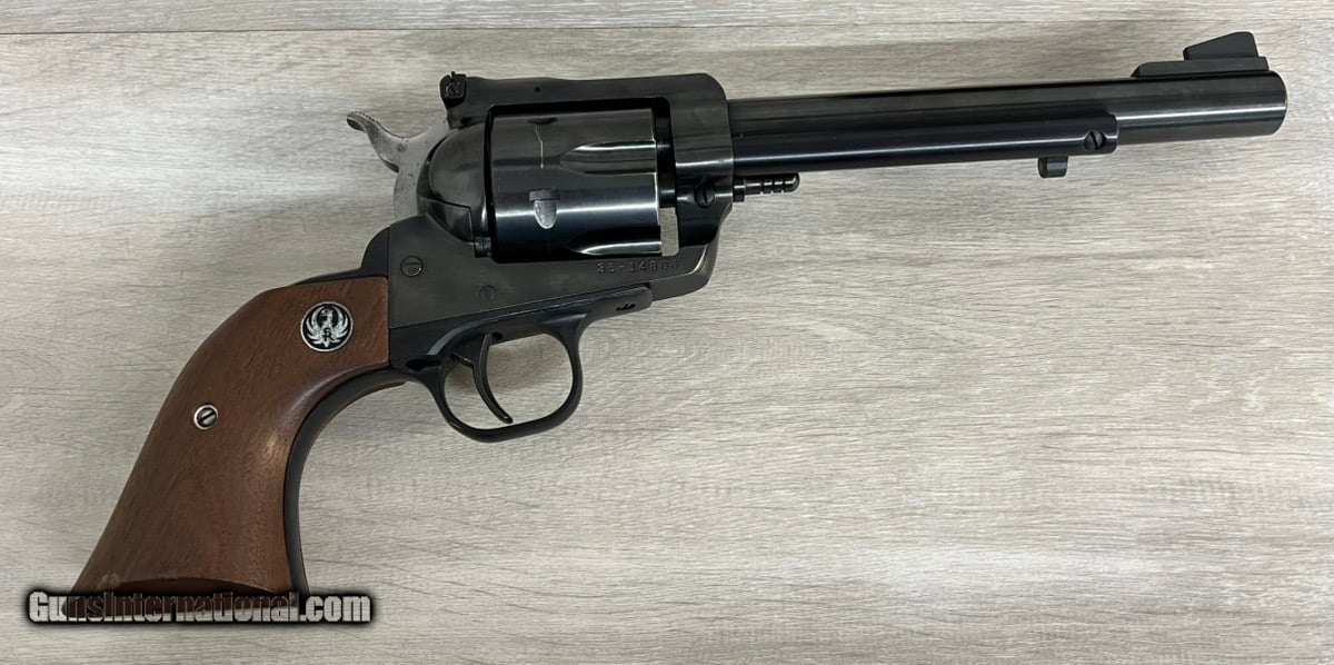 Description: Guns Listing ID: 521683 REVOLVER: RUGER MODEL NEW MODEL BLACKHAWK, SERIAL NUMBER 35-14806, BLUE, NOT INCLUDED, SINGLE ACTION, 357 MAGNUM Notes: Ruger Model Blackhawk in .357 Magnum. Features a 6.5\" barrel, 6-round capacity, and adjustable sights. Durable blued finish with classic western styling. Pre-owned in excellent condition. Manufacturer: RUGER Model: NEW MODEL BLACKHAWK Caliber Info: .357 MAG Condition: Used - Non-Certified Barrels: 4.62" BARREL Action: REVOLVER Finish: black and wood Price: $665.99 Contact Seller |