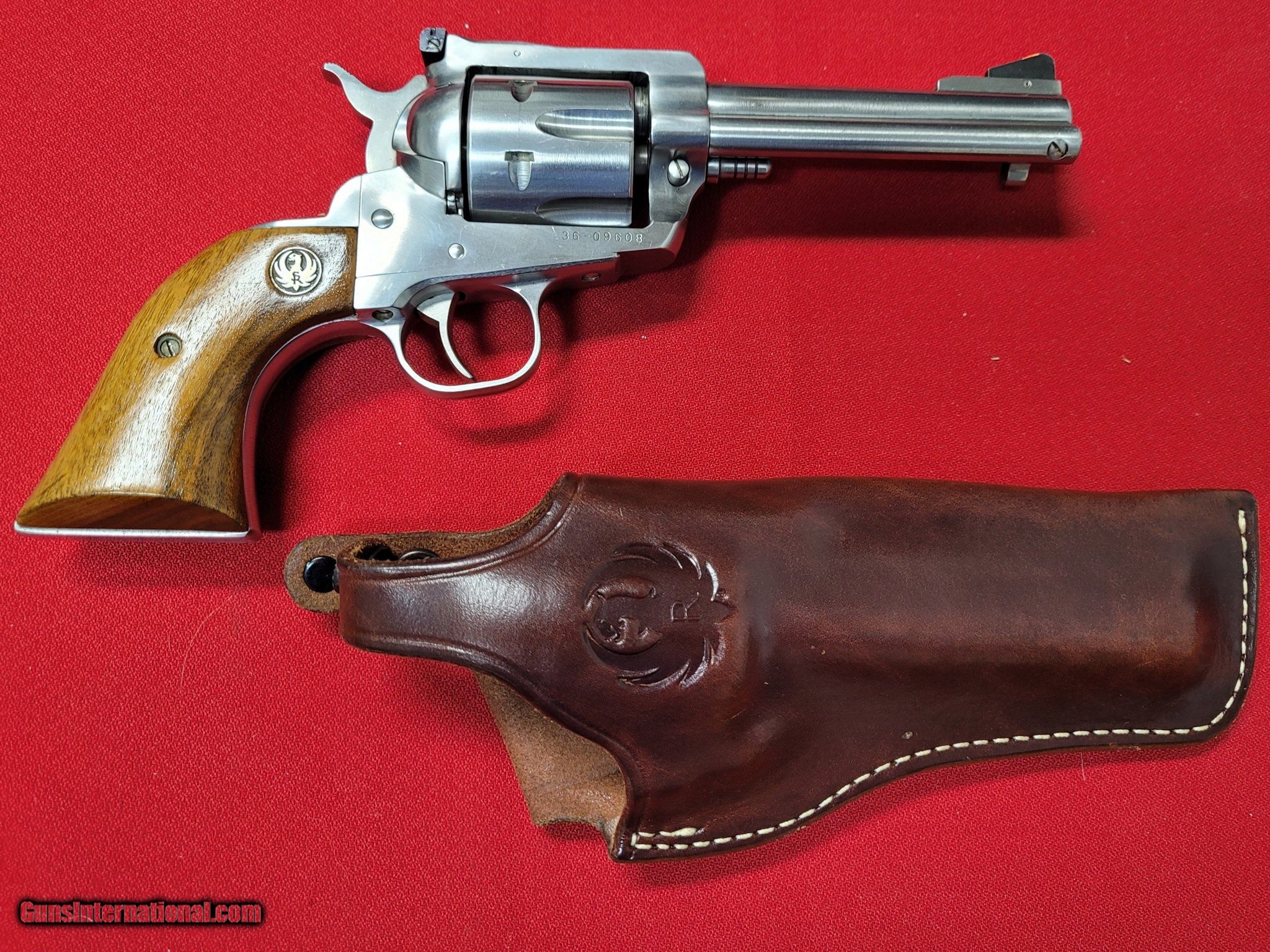 Description: Guns Listing ID: 1245219 This item is a stainless Ruger New Model Blackhawk (man 1982). It is chambered in 357 magnum and is in Excellent condition. Includes a leather Ruger holster. SOLD Manufacturer: RUGER Model: NEW MODEL BLACKHAWK .357 MAGNUM Caliber Info: .357 MAG Condition: Used - Non-Certified Barrels: 4.75 BARREL Finish: STAINLESS/WOOD GRIPS |