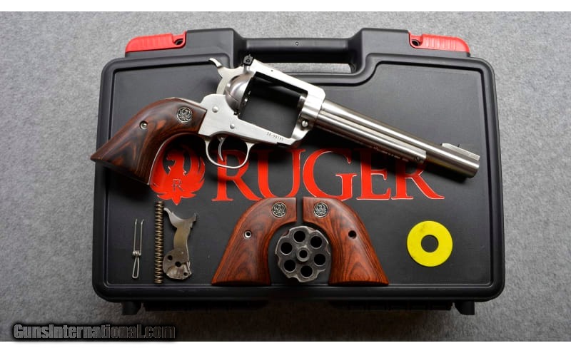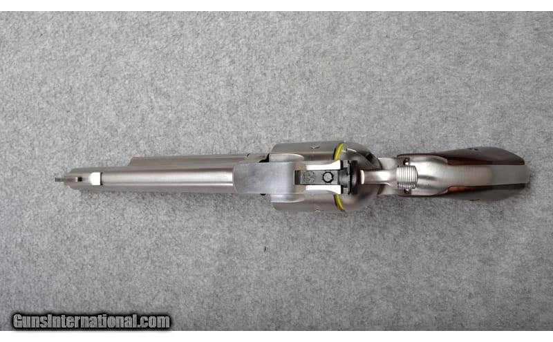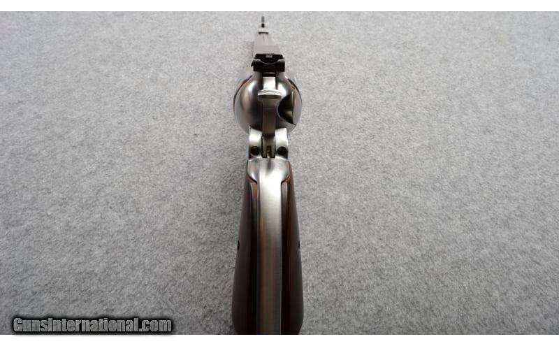 Description: This Ruger New Model Blackhawk is chambered in .357 Magnum, 6.5" barrel, stainless steel with a satin stainless finish, traditional western-style hardwood grip. Serial# 38-98195 .357 Magnum SOLD Chambers: 6 shot. Metal Condition: Very Good Condition Wood Condition: Very Good Condition Bore Condition: Bright and shiny with strong rifling Barrels: 6.5 inch. Triggers: Single Action Weight: 48 oz. Sights: "Blade front, adjustable rear Item Location: Richfield, WI |
