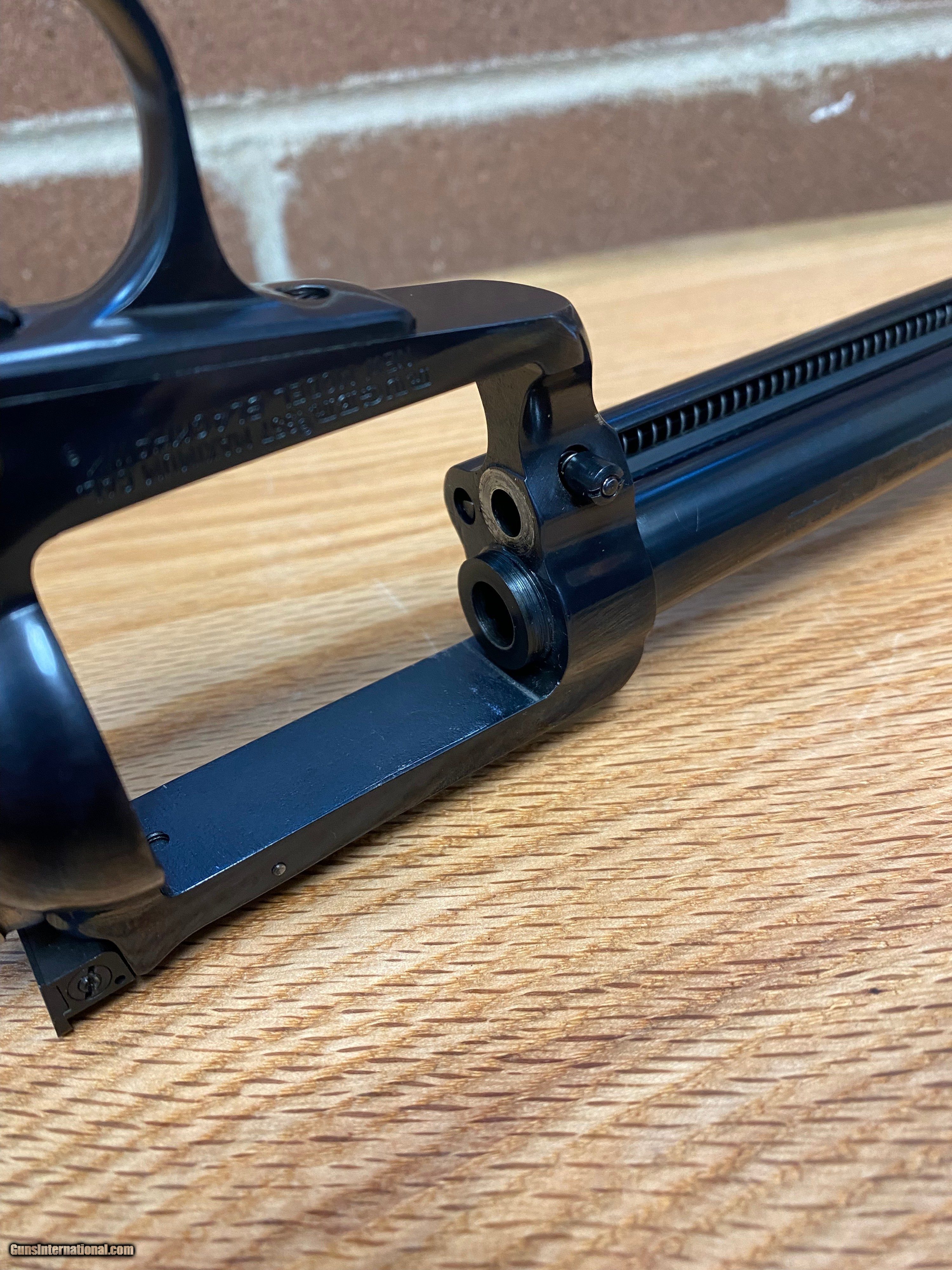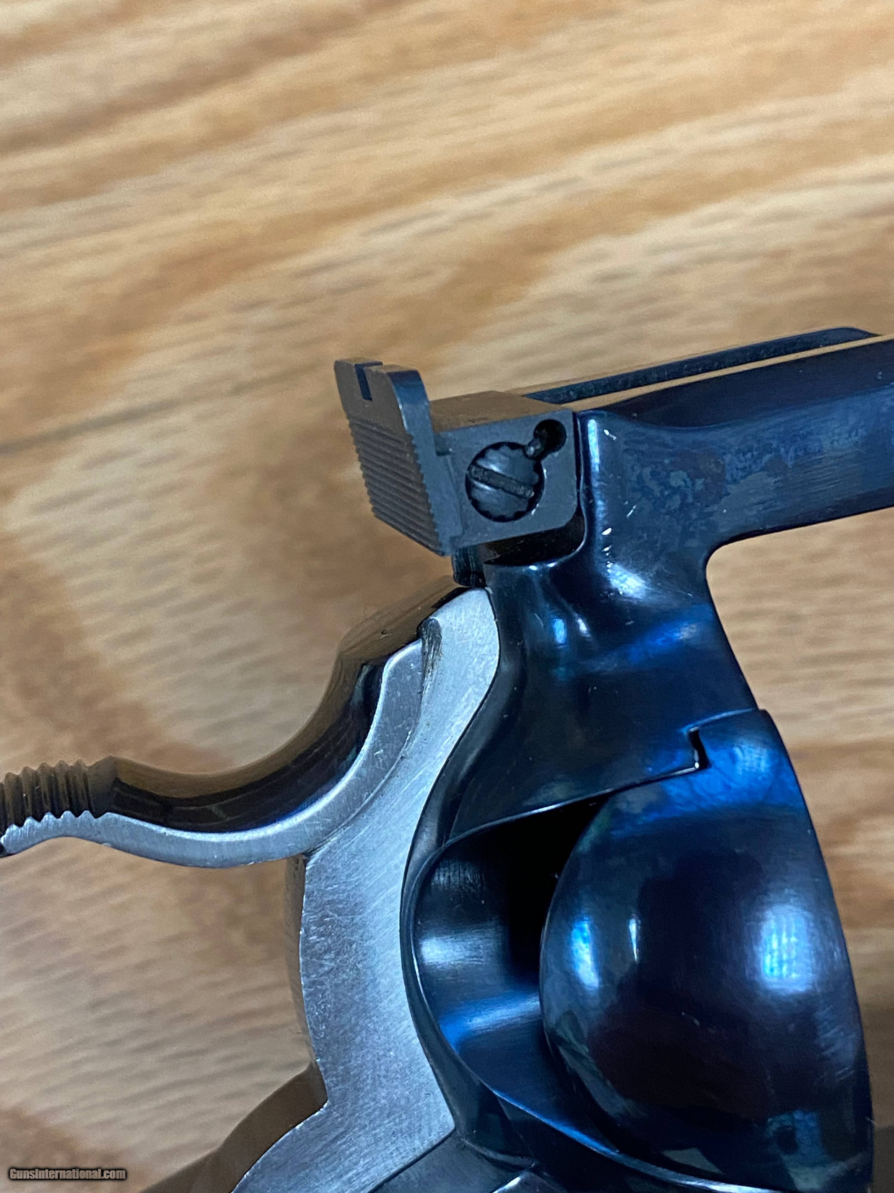 Description: This is a beautiful custom New Model Blackhawk in 357 Remington Maximum, this Blackhawk has a free spin cylinder and a Belt Mountain cylinder pin. You can adjust the trigger externally if you take the cylinder out. This Blackhawk has a Bisley grip frame. The grip frame measures .893 and the cylinders frame measures .915. This Blackhawk has had very few rounds through it and has a great feel to it. The bluing is amazing and the sight picture is great, this model has custom sights with custom adjustable rear sights. The serial number for this Blackhawk dates to 1983. (Fermin C Garza) This firearm is capable of shooting 357 Magnum and 38 Special aswell. SOLD Handgun Caliber: .38 Special, .357 Magnum, .357 Remington Maximum Manufacturer: Ruger Model: Blackhawk Serial Number: 600-01999 Barrel Length: 7 1/2 Condition: 98+ Metal Condition: 98+ |