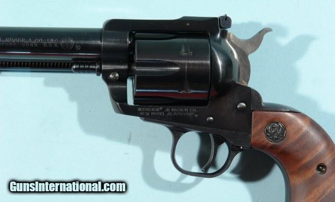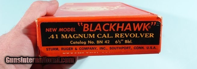 RUGER NEW MODEL BLACKHAWK .41 REM MAGNUM 6 1/2" BLUE SINGLE ACTION REVOLVER WITH ORIG. BOX, CIRCA 1975.
