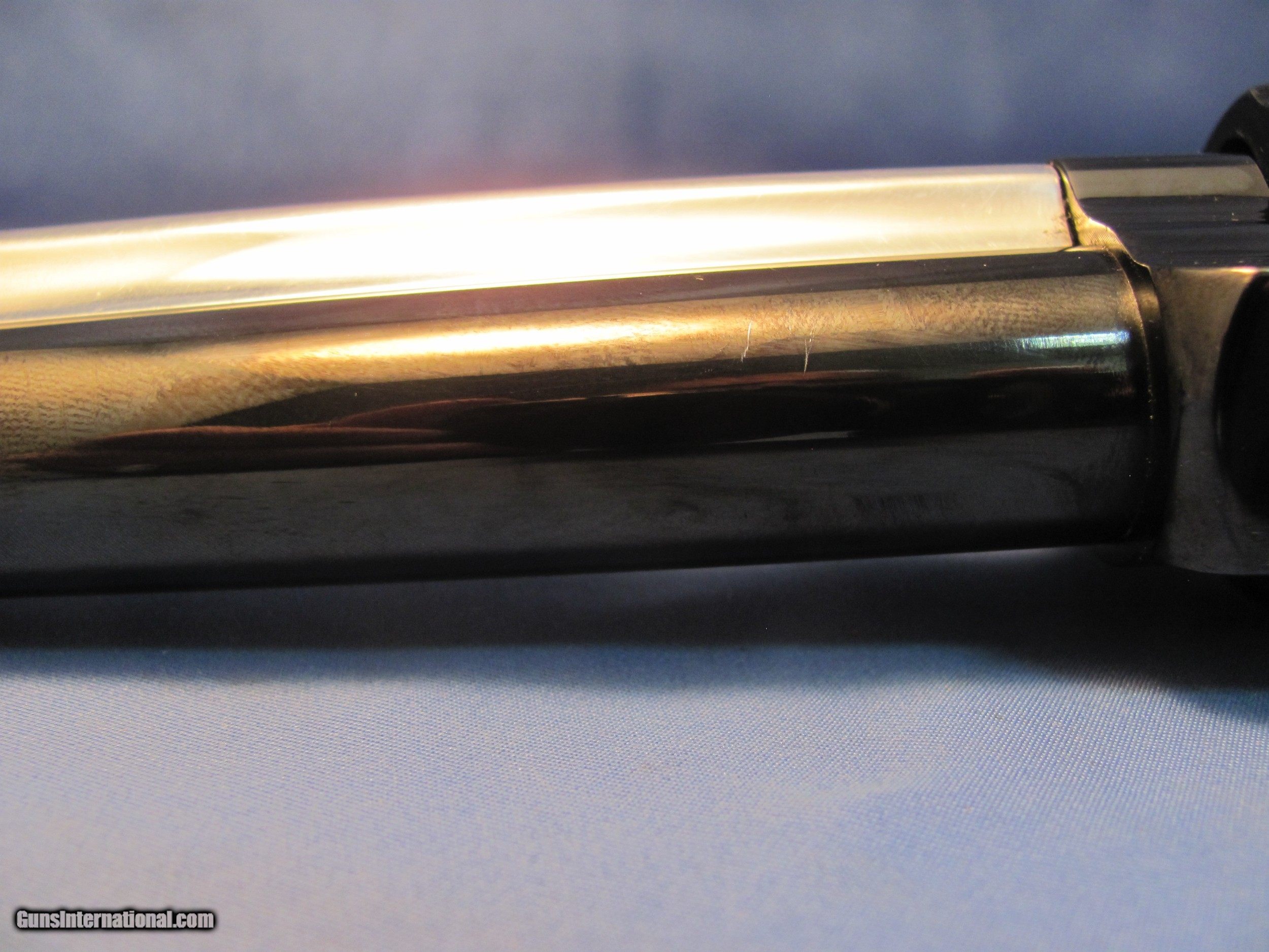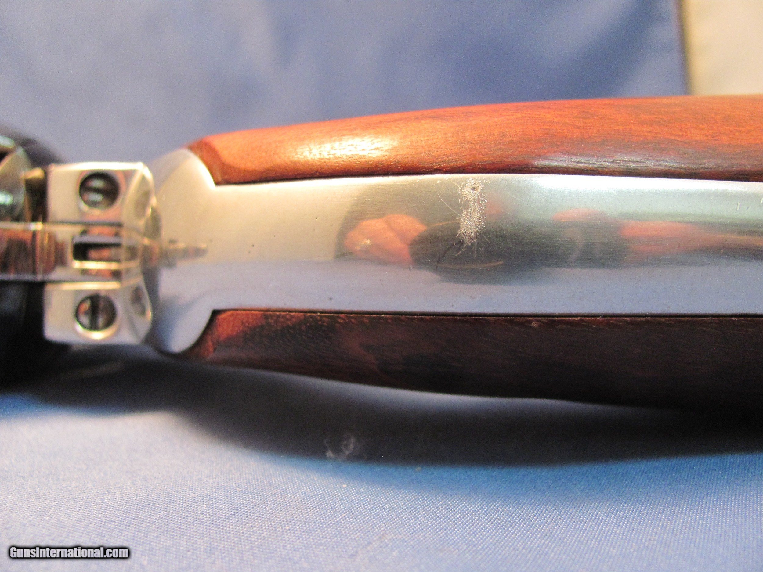 Description: THIS IS A RUGER NEW MODEL BLACKHAWK 41MAG 6-1/2” SIX SHOT REVOLVER THE BORE ON THE 6-1/2” BARREL IS BRIGHT, SHINY AND EXCELLENT THE NON-FACTORY CUSTOM BRIGHT BLUED FINNISH IS EXCELLENT AND THE BACK STRAP/TRIGGER GUARD AND EJECTOR ROD HOUSING HAVE BEEN POLISHED BARE. THERE IS A FLAW HALF WAY UP THE BACK STRAP (SHOWN) THAT NEEDS TO BE POLISHED RUGER FACTORY WOOD GRIPS ADJUSTABLE SIGHTS SHIPPED AS SHOWN WITH NOTHING ELSE DUE TO THE FAST PACE AND VOLATILITY OF THE CURRENT GUN MARKET, THERE IS NO INSPECTION PERIOD GIVEN. WE OFFER NO REFUNDS FOR ANY REASON. BUY KNOWING THAT. BUYER PAYS A FIXED AMOUNT OF 35.00 INSURED SHIPPING TO THE LOWER MAINLAND STATES, ALASKA, HAWAII OR PUERTO NO SHIPMENTS OUTSIDE THE USA. MISSOURI RESIDENTS DO PAY A 8.575% SALES TAX. NO EXTRA CHARGE FOR CREDIT CARDS BRANDON'S GUN TRADING CO LLC 321 EAST 20TH ST JOPLIN MO. 64804 (417)-623-8787 FAX (417)-623-2326 9-5 TUESDAY-SATURDAY CENTRAL TIME WE ARE ALSO CLOSED THE 1'ST SATURDAY OF EVERY MONTH AND HOLIDAYS. DO NOTIF YOU CAN'T PAY FOR IT WITH IN 2 WEEKS OF THE CLOSE. OUR INVENTORY REFERENCE: SAFE #3 PLEASE NOTE, UPS SERVICE HAS GOTTEN SO BAD UNDER CURRENT MANAGEMENT THAT WE WON’T SHIP UPS UNLESS WE ABSOLUTELY HAVE TOO. WHEN WE DOUBLE PACK, INSURE, ADD SIGNATURE, USE GOOD BOXES AND UPS EVEN NOTES THEY DAMAGED THE ITEM AND THEY STILL WONT PAY? AFTER BEING A GOOD AND LOYAL CUSTOMER FOR OVER 25 YEARS SPENDING 10’S OF THOUSANDS OF DOLLARS WITH UPS WITH LESS THAN 5 CLAIMS? WERE DONE !! ALSO, ANY INSURANCE WE DO PUT ON OUR PACKAGES IS VOID IF YOU OR YOUR DEALER THROWS AWAY THE BOX, ANY PACKING MATERIALS OR FAILS TO PICTURE AND NOTIFY US AND THE SHIPPING COMPANY IMMEDIATELY SOLD Handgun Caliber: .41 Remington Magnum Manufacturer: RUGER Model: NEW MODEL BLACKHAWK Condition: EXCELLENT |