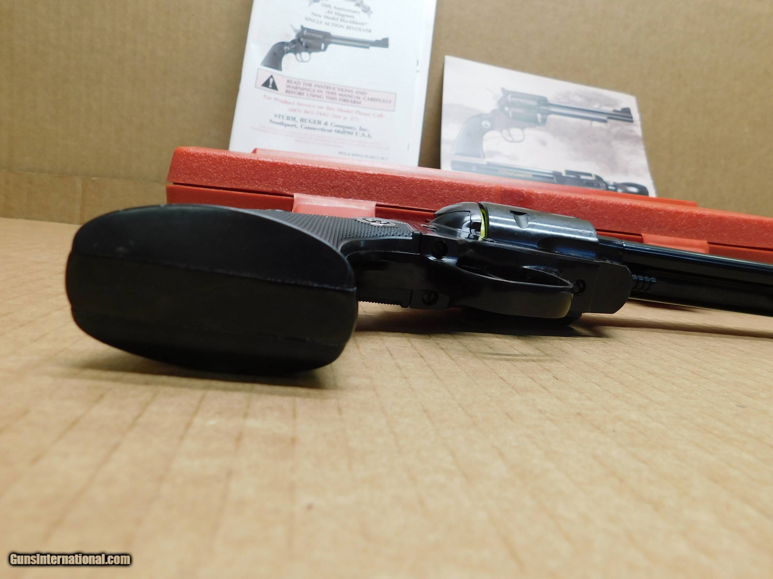 Description: This is a factory new unfired Ruger New model Blackhawk revolver It is #00867 50th Anniv. 1956-2006 It is a 44 mag with an all steel frame Orginal flat top design with micro adjust rear sight 6 shot with a 61/2" black barrel With hard case SN-870-15144 SOLD Handgun Caliber: .44 Remington Magnum Manufacturer: Ruger Model: New Model Blackhawk Serial Number: 870-15144 Barrel Length: 6 1/2 Condition: Unfired/factory new Metal Condition: Excellent Bore Condition: Excellent Barrels: Black Finish: Black Sights: micro adjust rear sight Extras: Hard case |