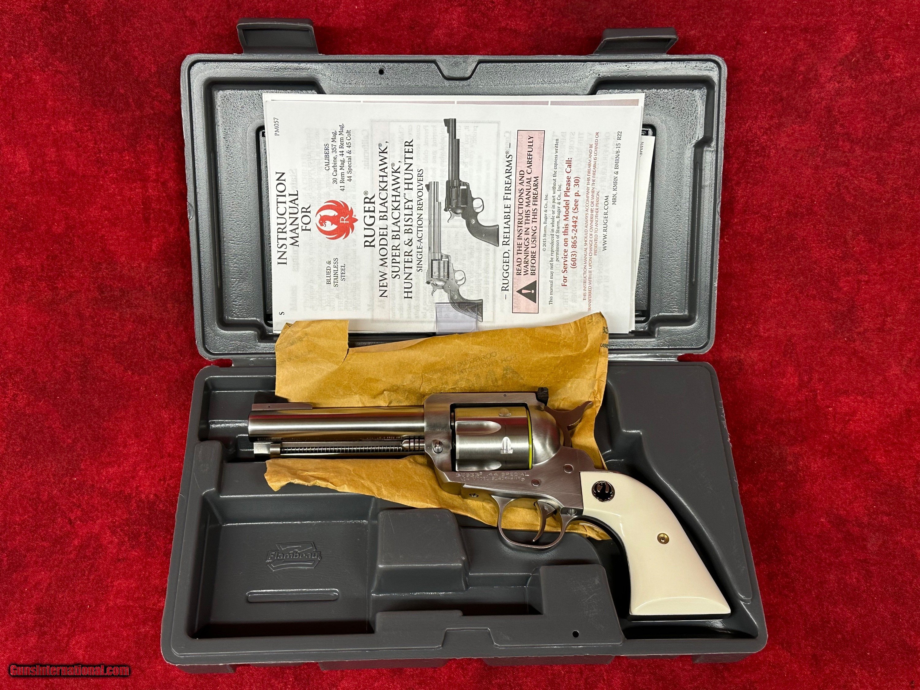 Ruger New Model Blackhawk .44 S&W Special, KNVB-444SPCL, stainless steel, 4 5/8" barrel, simulated ivory grips, flat top Talo Exclusive (0523