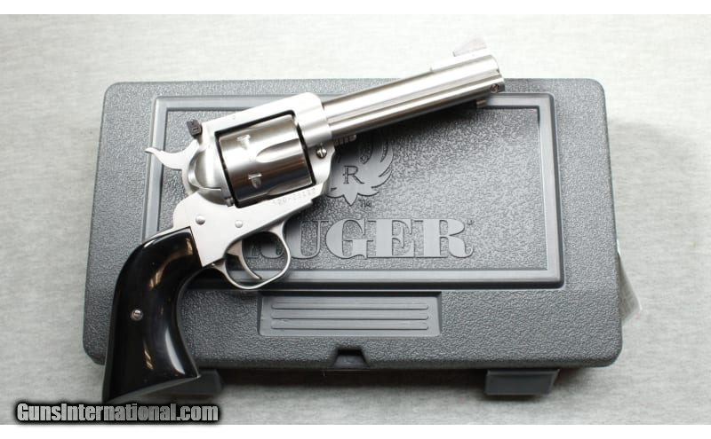 Description: Appears as new with original Ruger hard case. Classic Ruger single action .44 Special revolver, 4 5/8" barrel, stainless finish, adjustable sights, 6 shot fluted cyclinder, crisp single action trigger, serrated hammer and black Ruger factory grips. .44 S&W Special SOLD Chambers: Revolver Metal Condition: As new Bore Condition: Bright Barrels: 4 5/8 Triggers: Single action Butt Pad: Factory grips Sights: "Adjustable rear, blade front sights Item Location: La Vista, NE |