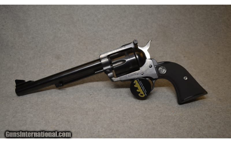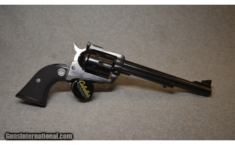 Description: This is a Ruger New Model Blackhawk revolver in .45 Caliber with a 7.5" barrel. The black barrel is clean and doesn't show any handling signs. The cylinder does have a small tracking line from the rotation of the cylinder. The black grips are in good codition, there is one large semi-deep scratch on the bottom of the right side grip. .45 SOLD Barrels: 7.5 inch Item Location: Hazelwood, MO |