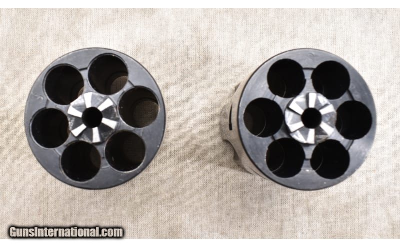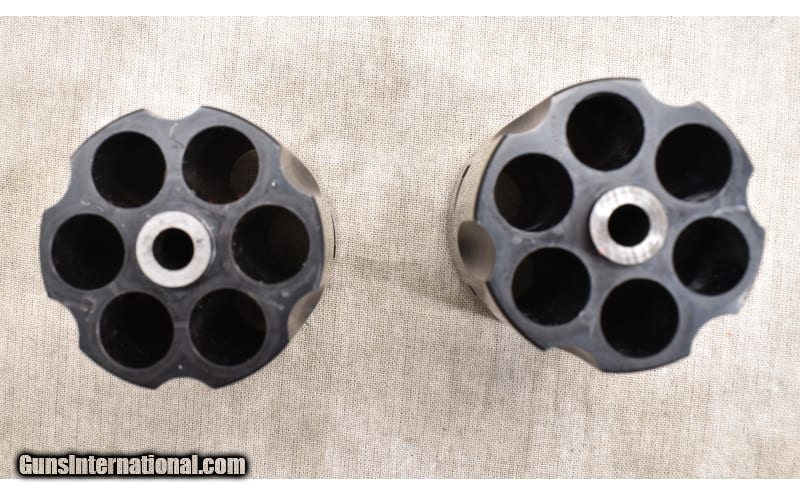 Description: This New Model convertible features cylinders for .45 (Long) Colt and .45 Auto Colt Pistol. The sights are adjustable for target work, the barrel is 7-1/2 inches long, and the grips are excellent. The S/N leads to a 1974 manufacture (first year of manufacture of the convertible .45.) .45 Colt SOLD Chambers: 6 rounds Metal Condition: Very good. Wood Condition: Very good to excellent. Bore Condition: Shiny and bright with good rifling. Barrels: 7-1/2 inch barrel Triggers: Factory single action only Butt Pad: "Smooth walnut original grip, Pachmayr Presentation rubber composition grips. Weight: 39 oz Sights: Serrated ramp and adjustable notch open sights. Item Location: Rogers |