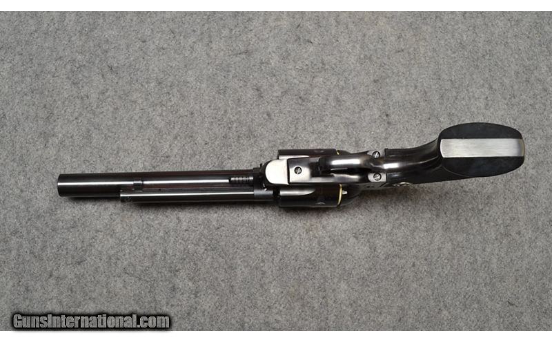 Description: This revolver is a Ruger New Model Blackhawk, chambered in .44 Magnum. Because it is the commemorative edition, it has gold inlay on the top of the barrel that reads "50 Years of .44 Magnum, 1956-2006". This firearm is in excellent condition overall, with only very light handling marks present. It comes with a commemorative hard case. .44 Magnum SOLD Metal Condition: "Excellent, only very light handling marks Wood Condition: "Excellent, light scratches on the butt of the grip Bore Condition: Bright and shiny with crisp rifling Barrels: 6.5" High polish blue Fore End: Black textured plastic grips Weight: 3lbs Sights: "Ramp front sight, notched rear sight Item Location: Wichita, KS |
